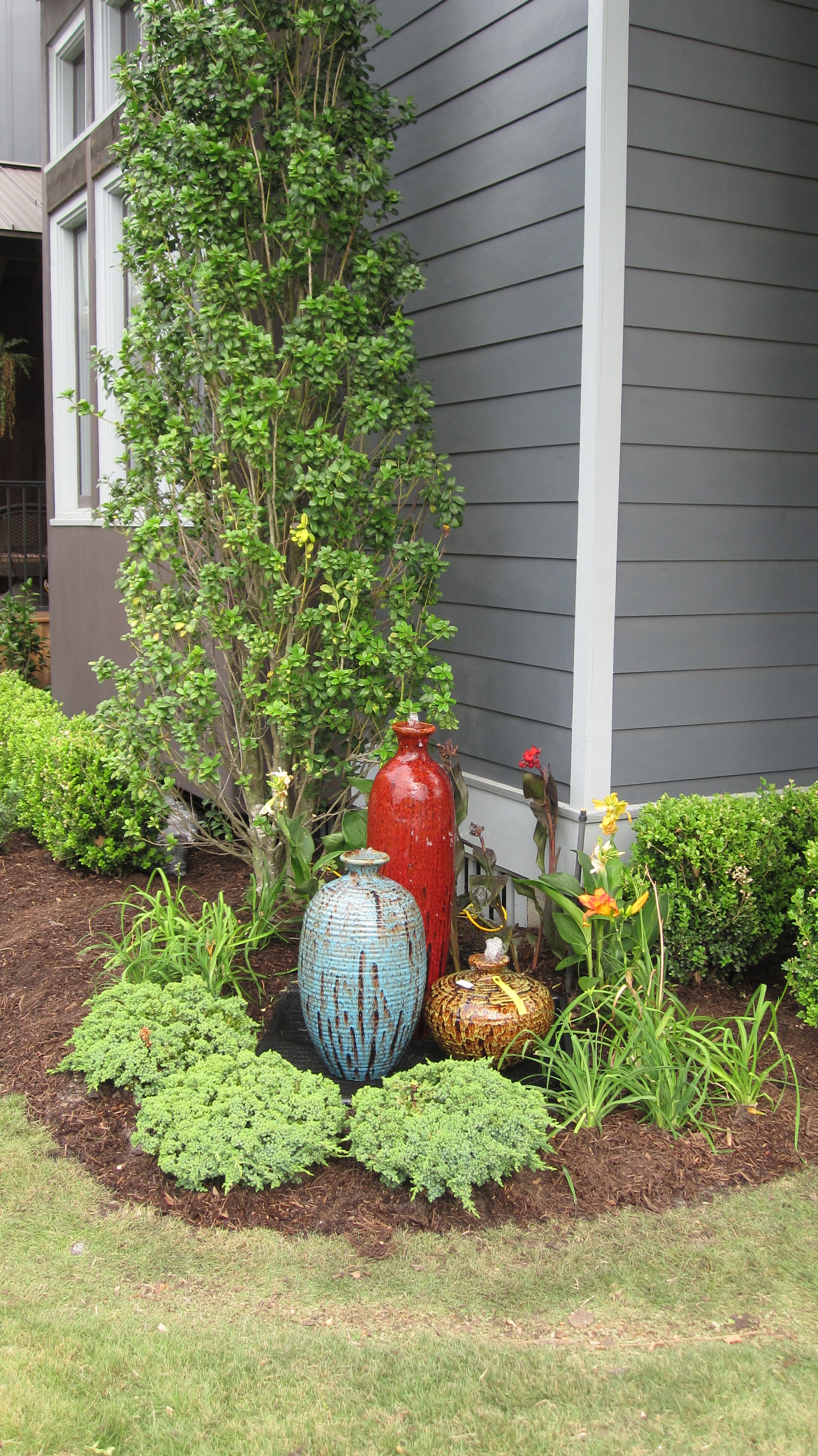 A garden should be a place to retreat from the stresses of the world you live in…the sound of water flowing from a fountain has a soothing effect that helps us still our minds and relax our bodies. We are attracted to water and it is necessary to our existence. We love going to oceans, streams or lakes when vacationing.