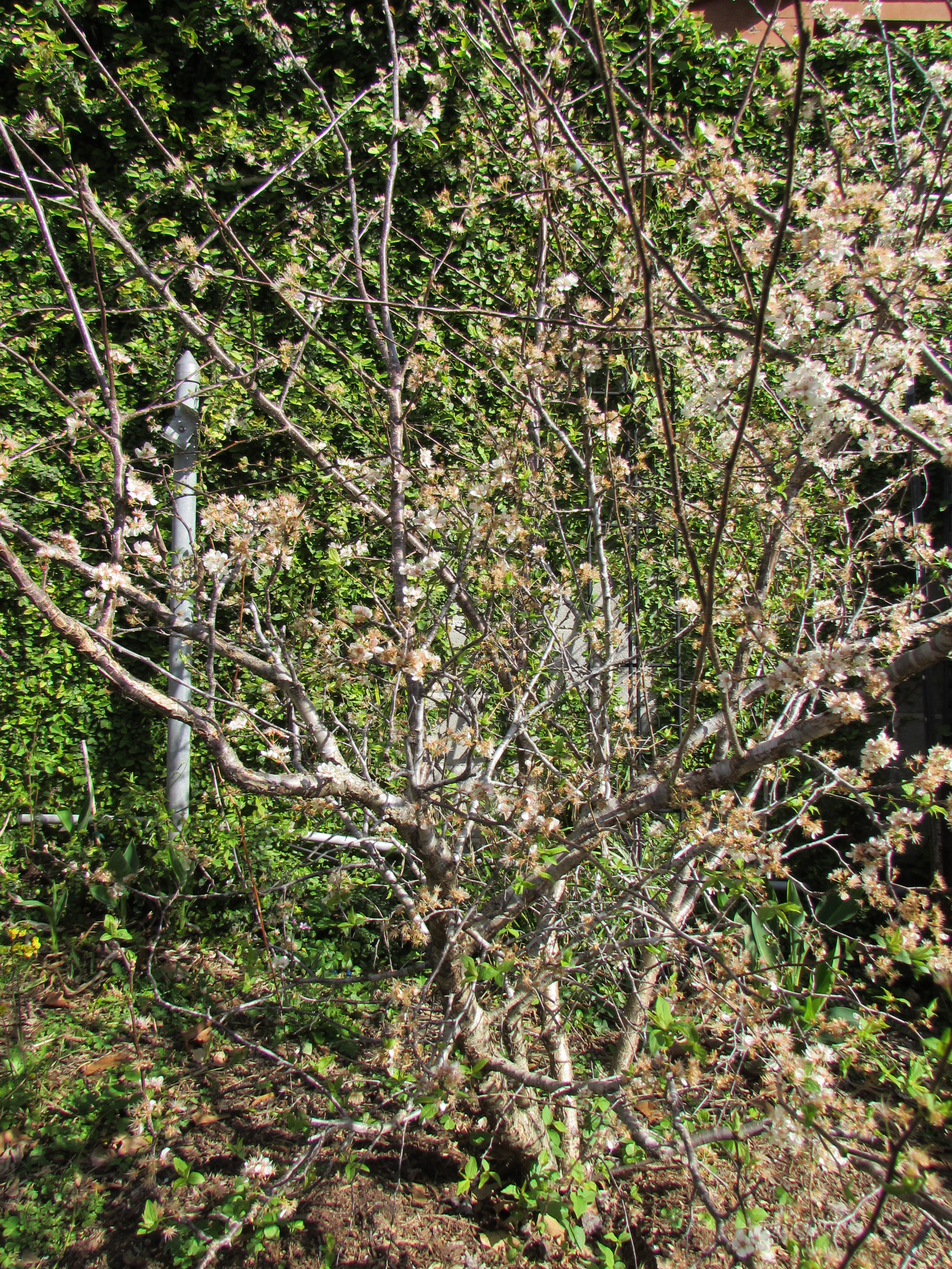 Ever since I did a design for a garden around an old Mexican Plum tree, Prunus mexicana, I have wanted one in our garden. A couple of years ago my husband rescued a tiny one and brought it home. And here it is 4 years later.