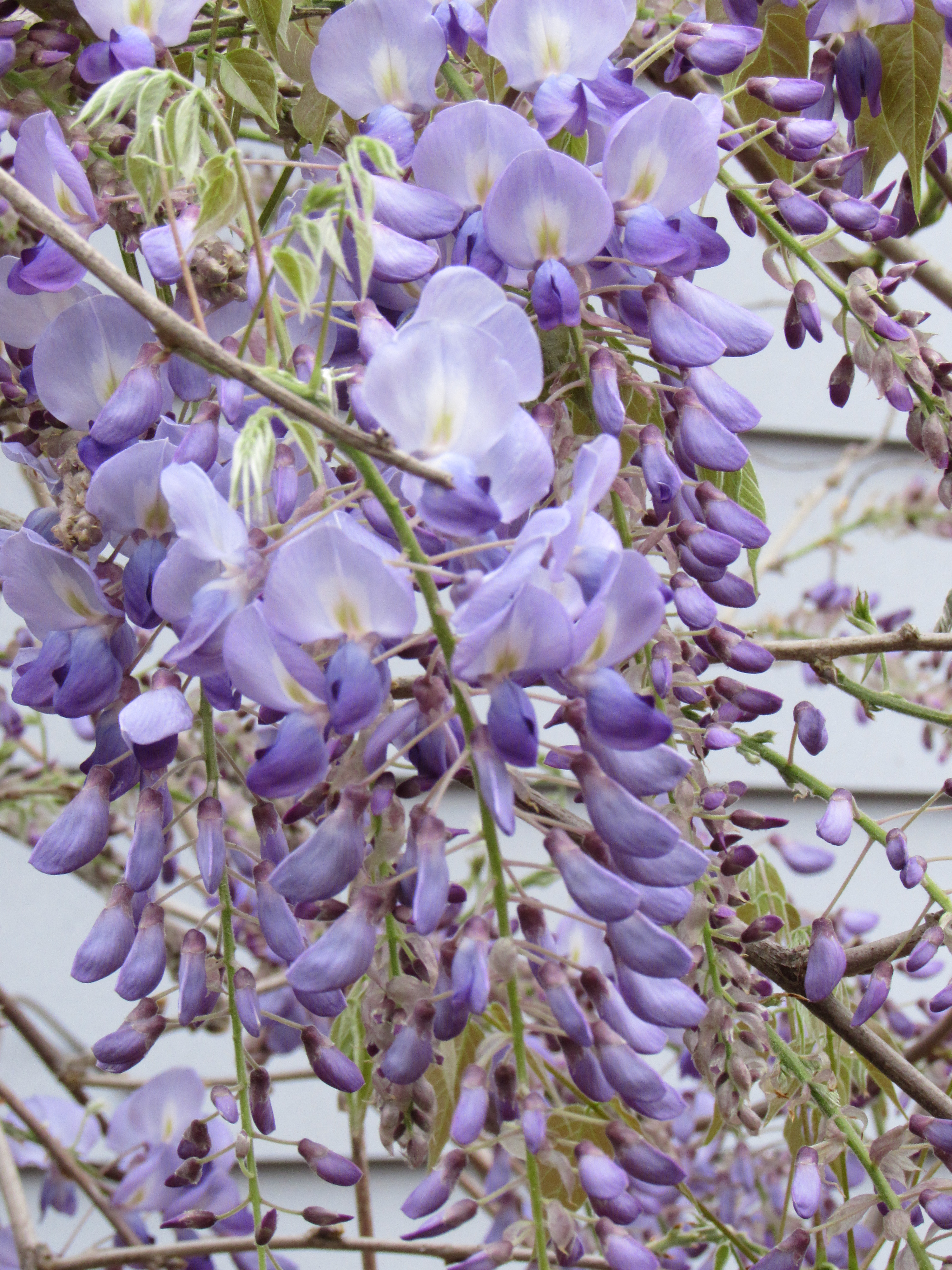 Wisterias are fast growing, hardy vines that twin and twist as they climb. They can be invasive and you need to be careful to plant it where you can keep it contained and under control. Each spring before the leaves appear they begin to flower with wonderful clusters of pendulous blooms that remind me of grapes hanging on a vine.