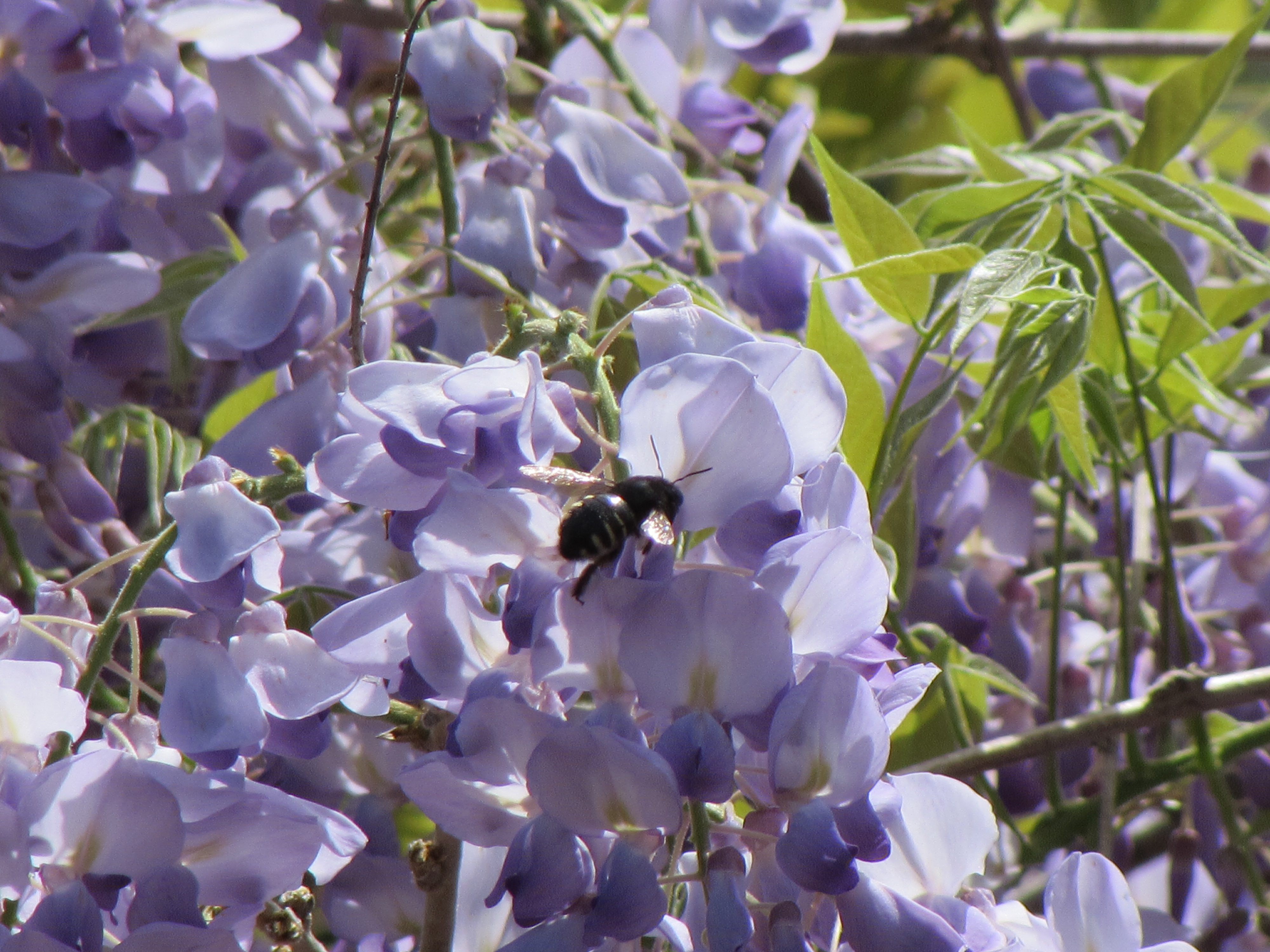 bee, Chinese wisteria, Evergreen wisteria, Houston, Millettia reticulate, nectar, pea family, pollinator, Ravenscourt Gardens, vine, Wisteria sinensis
