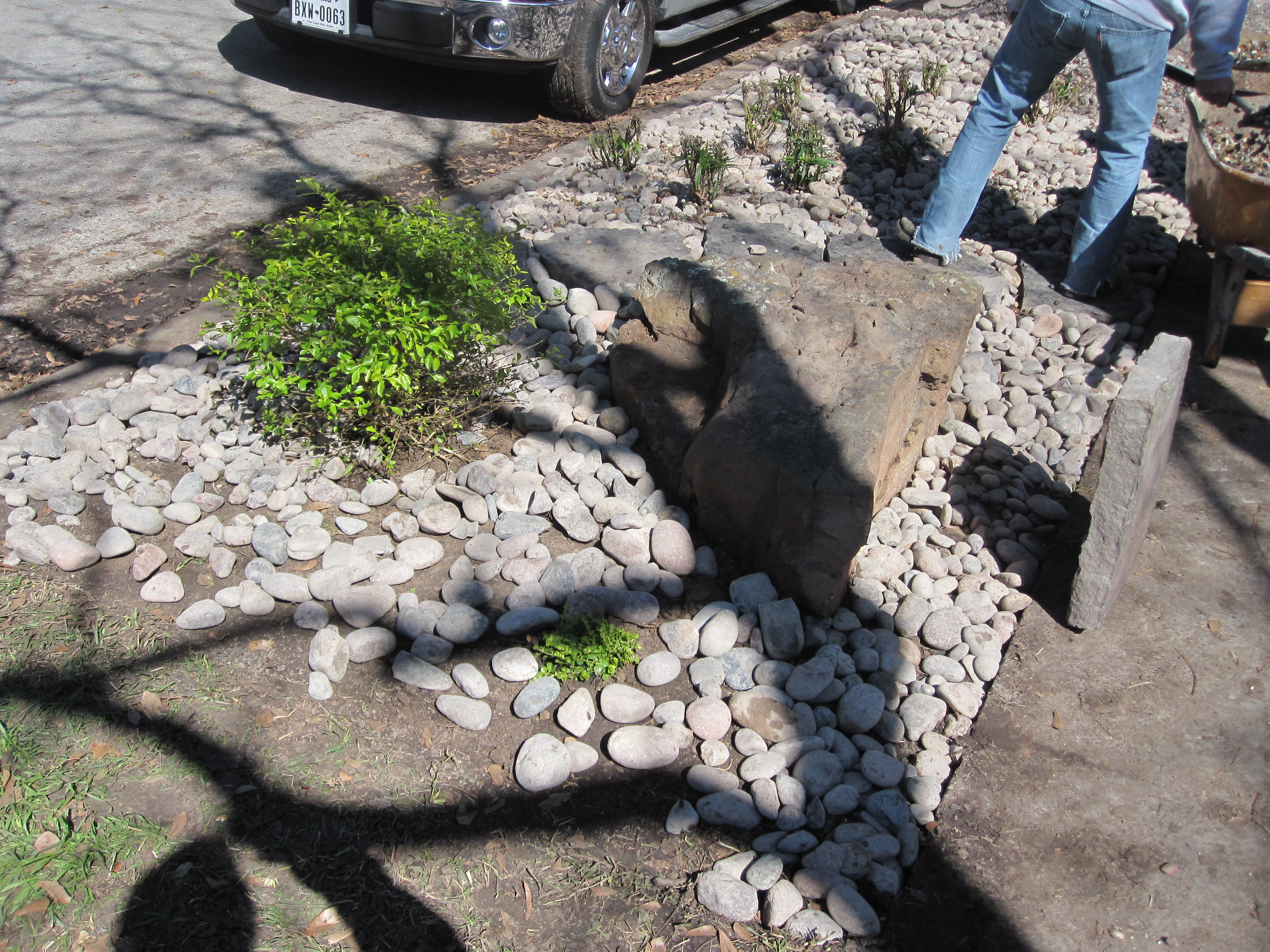 Thank you LL! We did get some nice complements while we were working on the project! We love working with boulders…standing, running, chasing! I have the best lizard rock in from of my own house…check out https://ravenscourtgardens.com/2014/03/12/snowdrops-in-my-garden/ for some cool pictures. I haven’t got rid of all the lawn yet…but next fall I am planting blue bonnets in the rest of the space. Just took up some of the wee bit of lawn in the inner front garden to put in a citrus orchard.