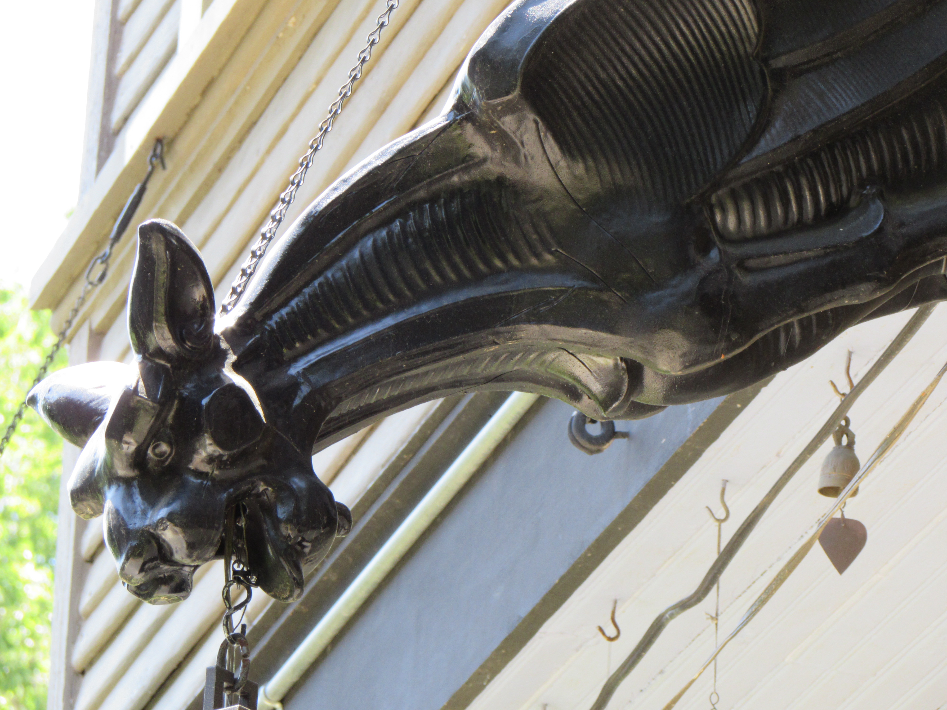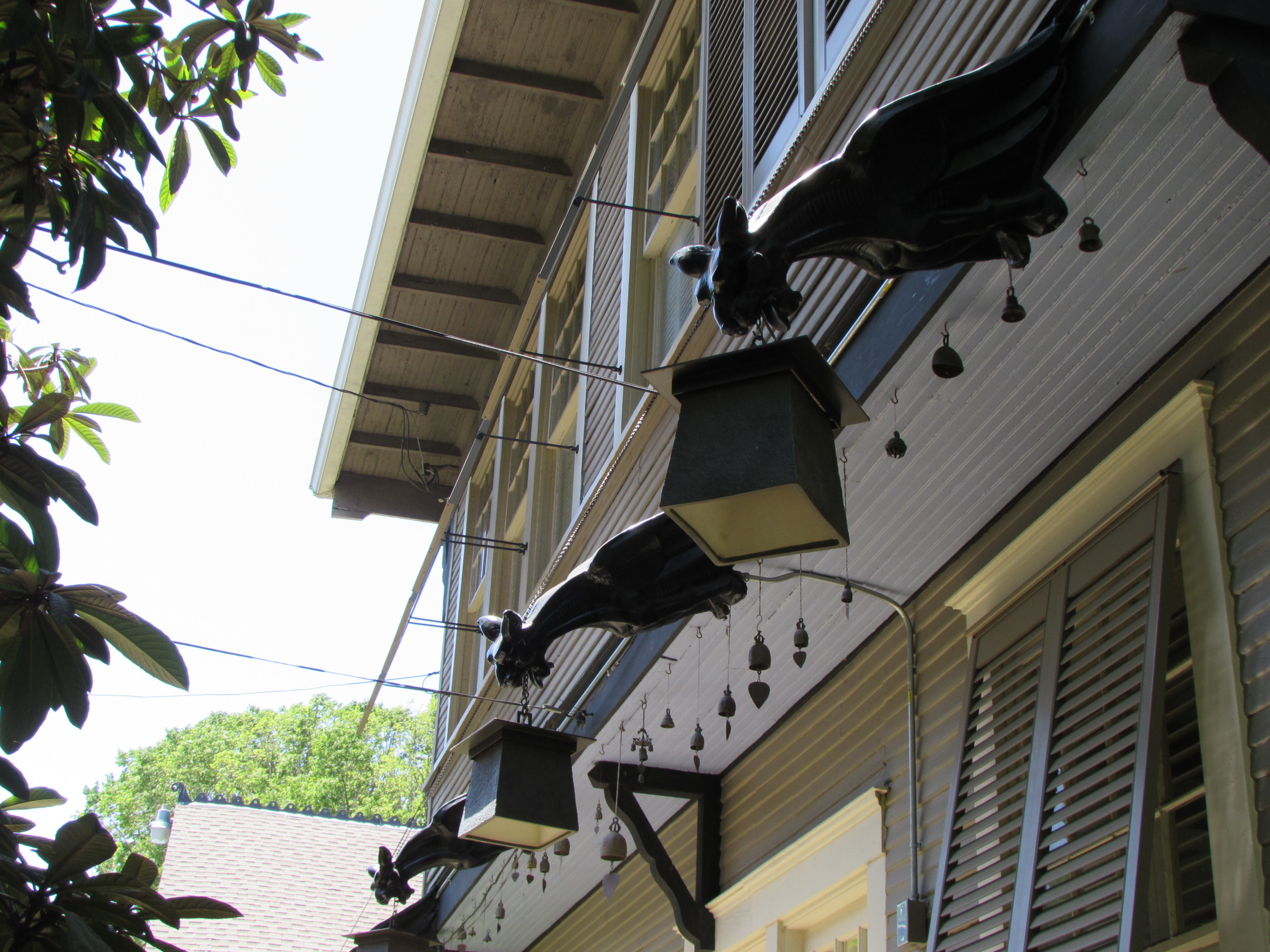 The house looks like most of the details are original. The gargoyles with custom lanterns are a more recent addition. Shawn remembers her saying she wanted dragons but these gargoyles where the closest she could find. I would love to see this garden at night, lit up with the glow from these fabulous lanterns.