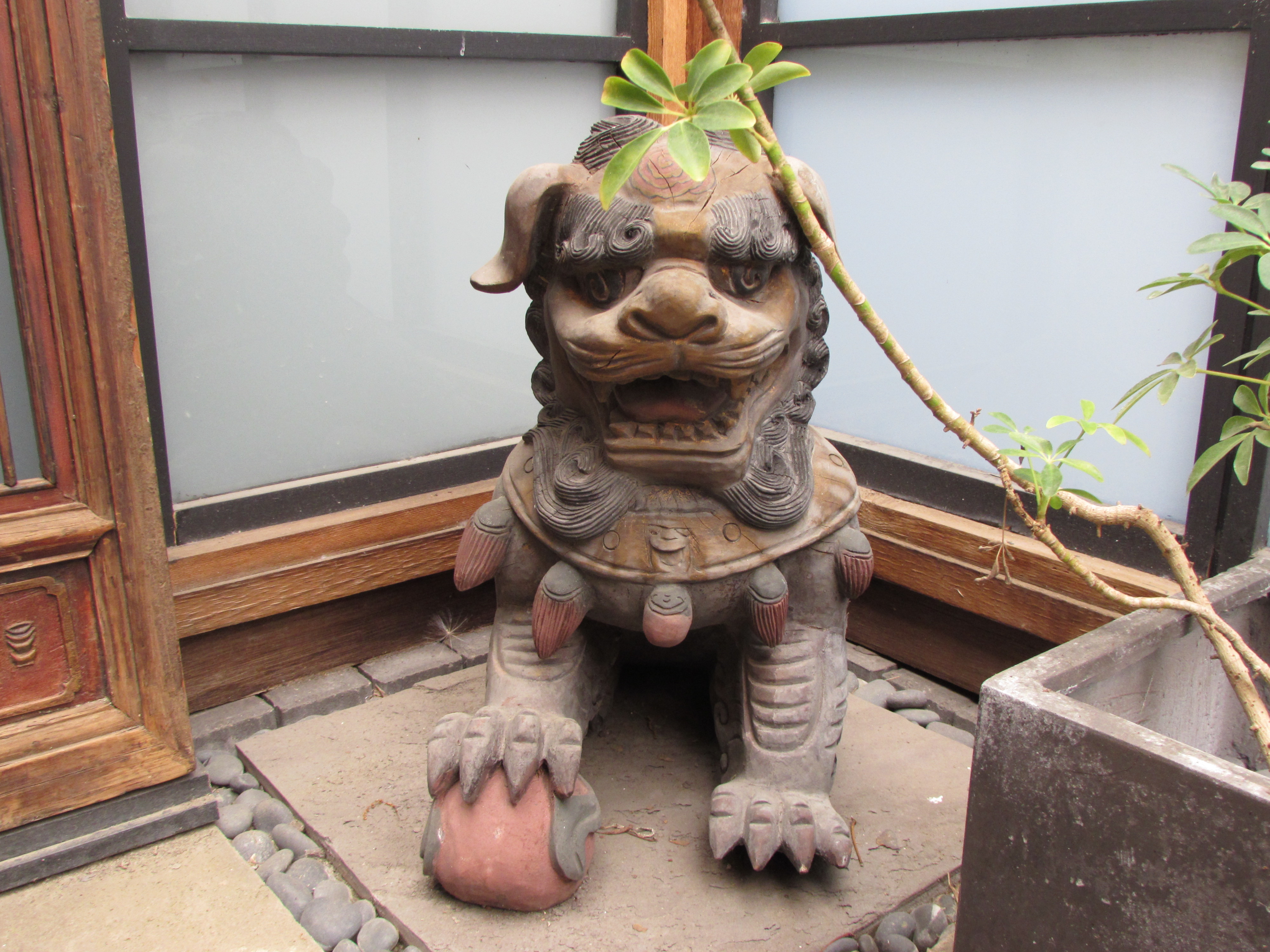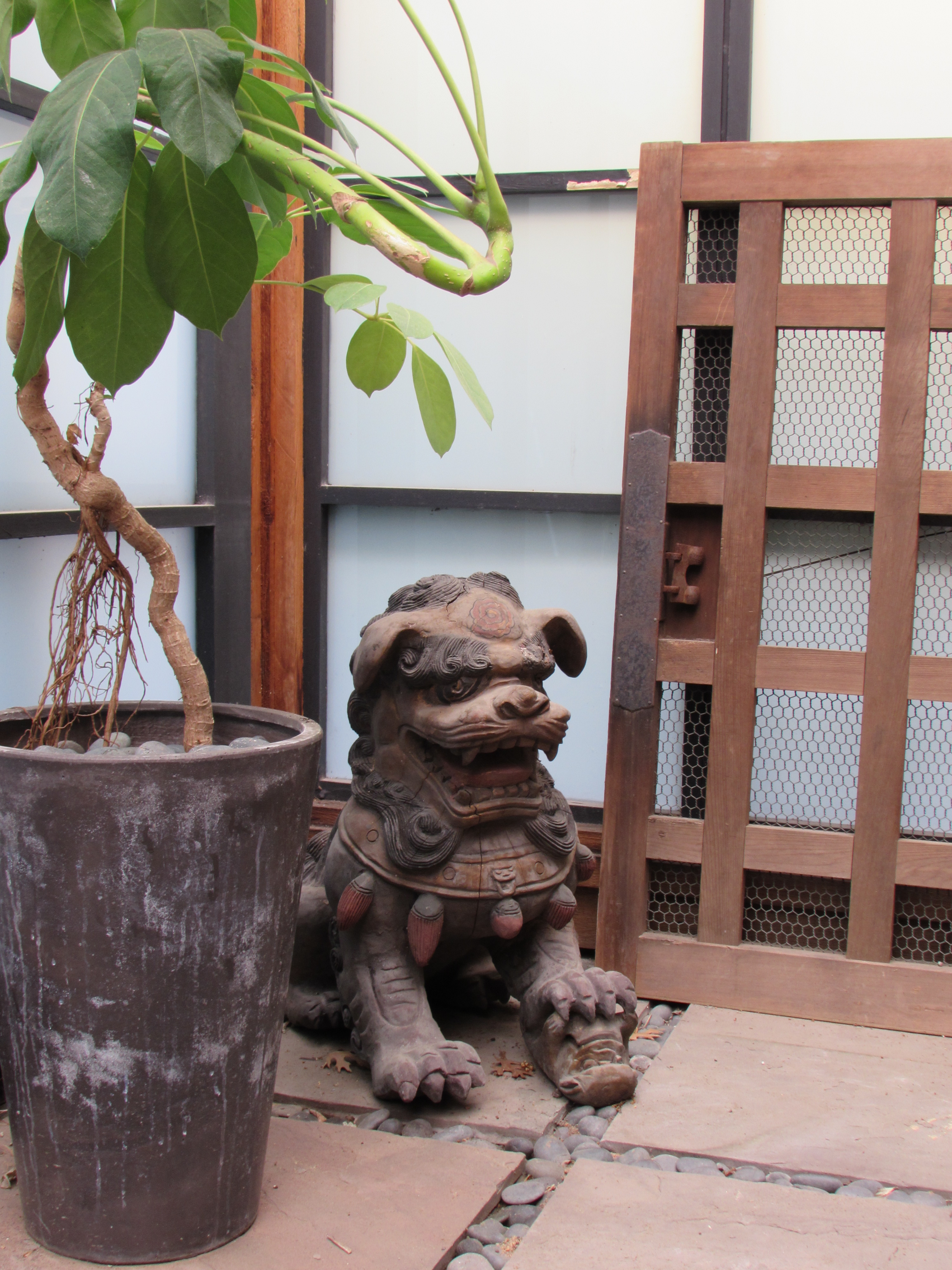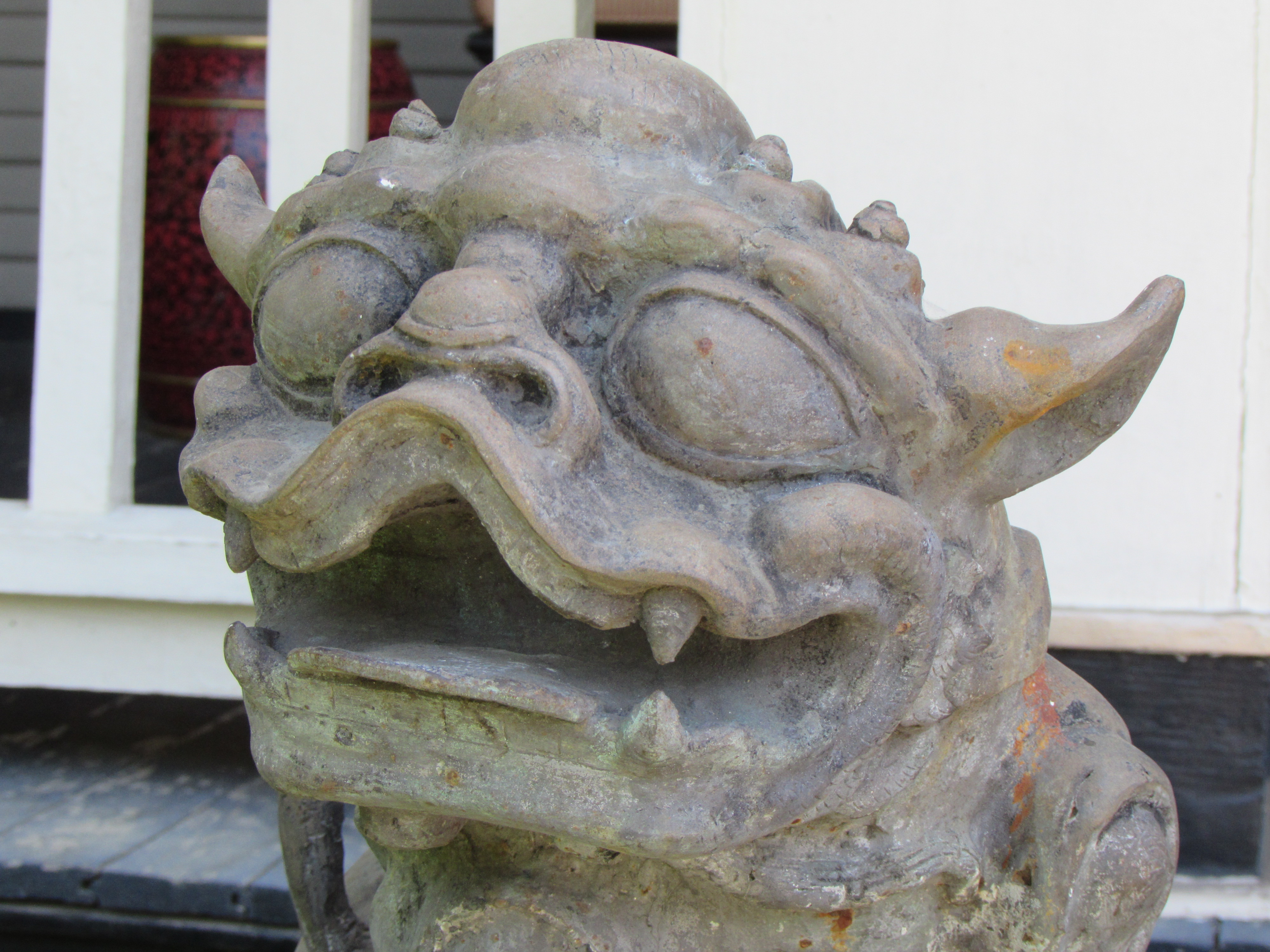 While relaxing and chatting on the porch I noticed another pair of Foo dogs. While I was taking photographs, we learned that they come in pairs with a male and female. The female always has a baby and the male a ball. You need to place them facing away from each other so they don’t quarrel.