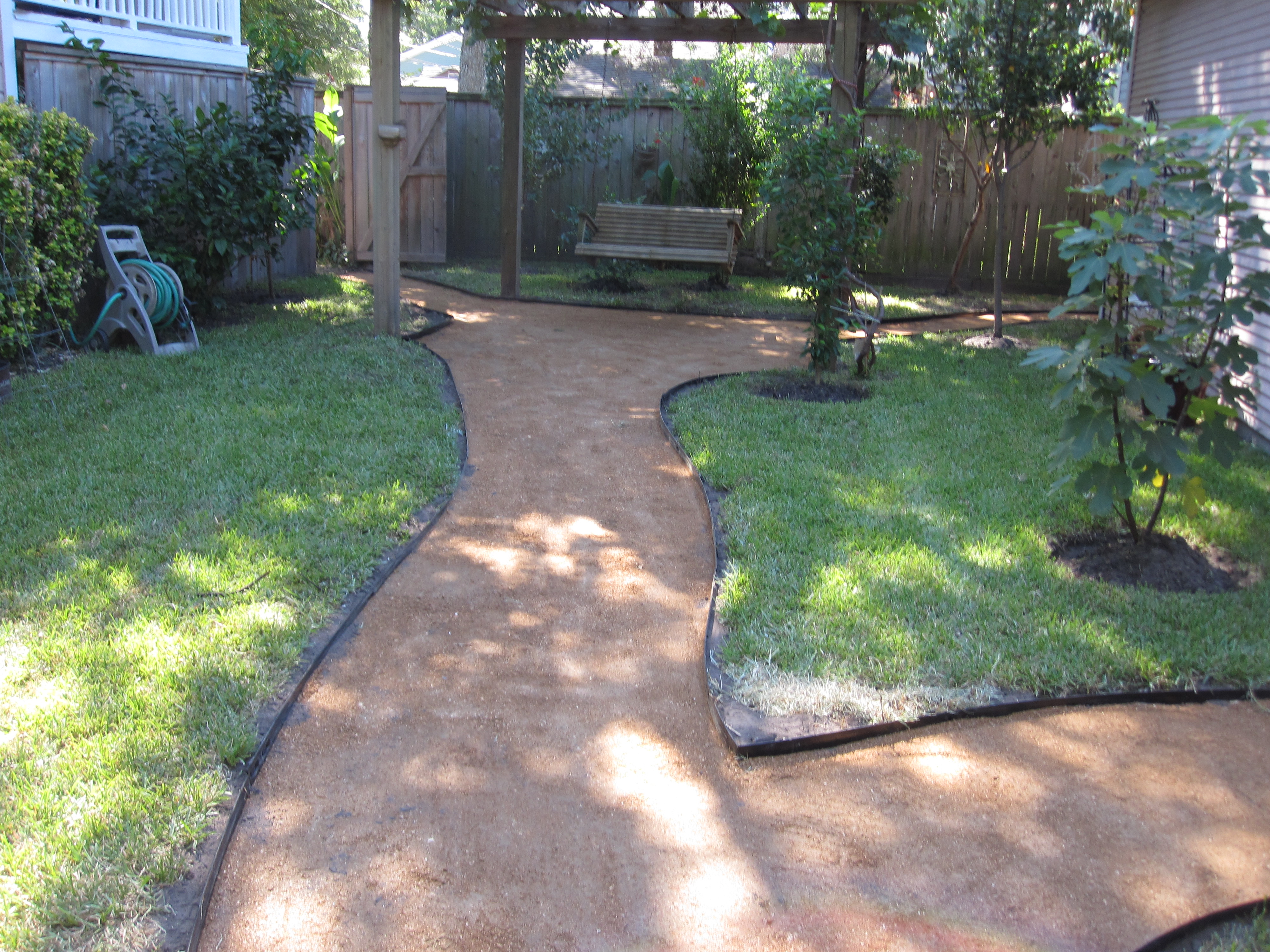 Looking for an inexpensive flat path? Decomposed Granite (DG) is a great, low-maintenance, and inexpensive material to use for paths. The easiest method of installation is simply layering DG where you want it and begin using the space. The problem with this method is your path may sink, shift, or quickly dissipate.