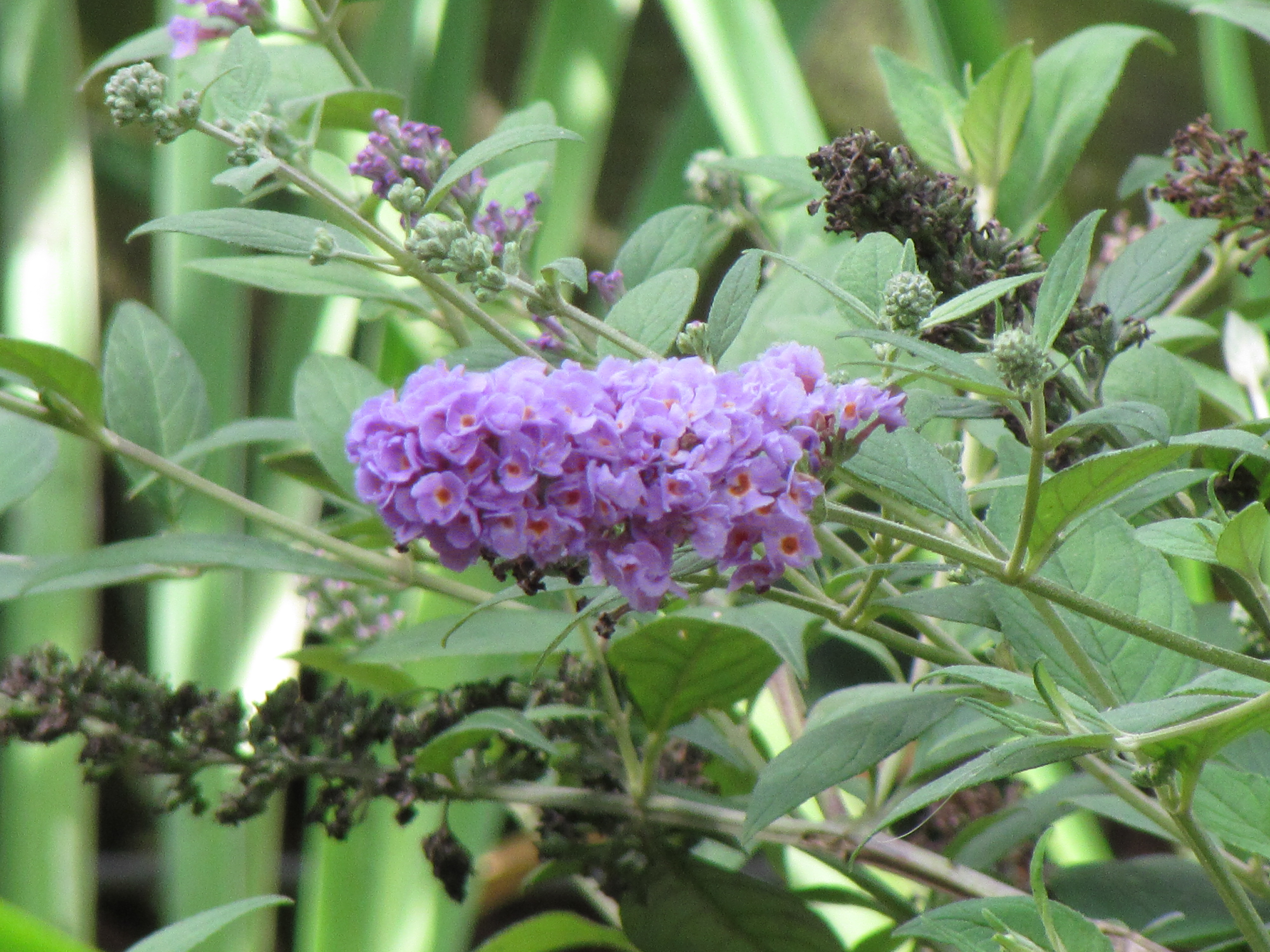 The leaves are elliptical and about 2 inches long. Birds and butterflies love the flowers. I only wish I could have captured a picture of one of the hundreds of butterflies that have come by for a visit. Blue Chip buddleias are new comers to our market were first released commercially in 2007 and patented in 2009.