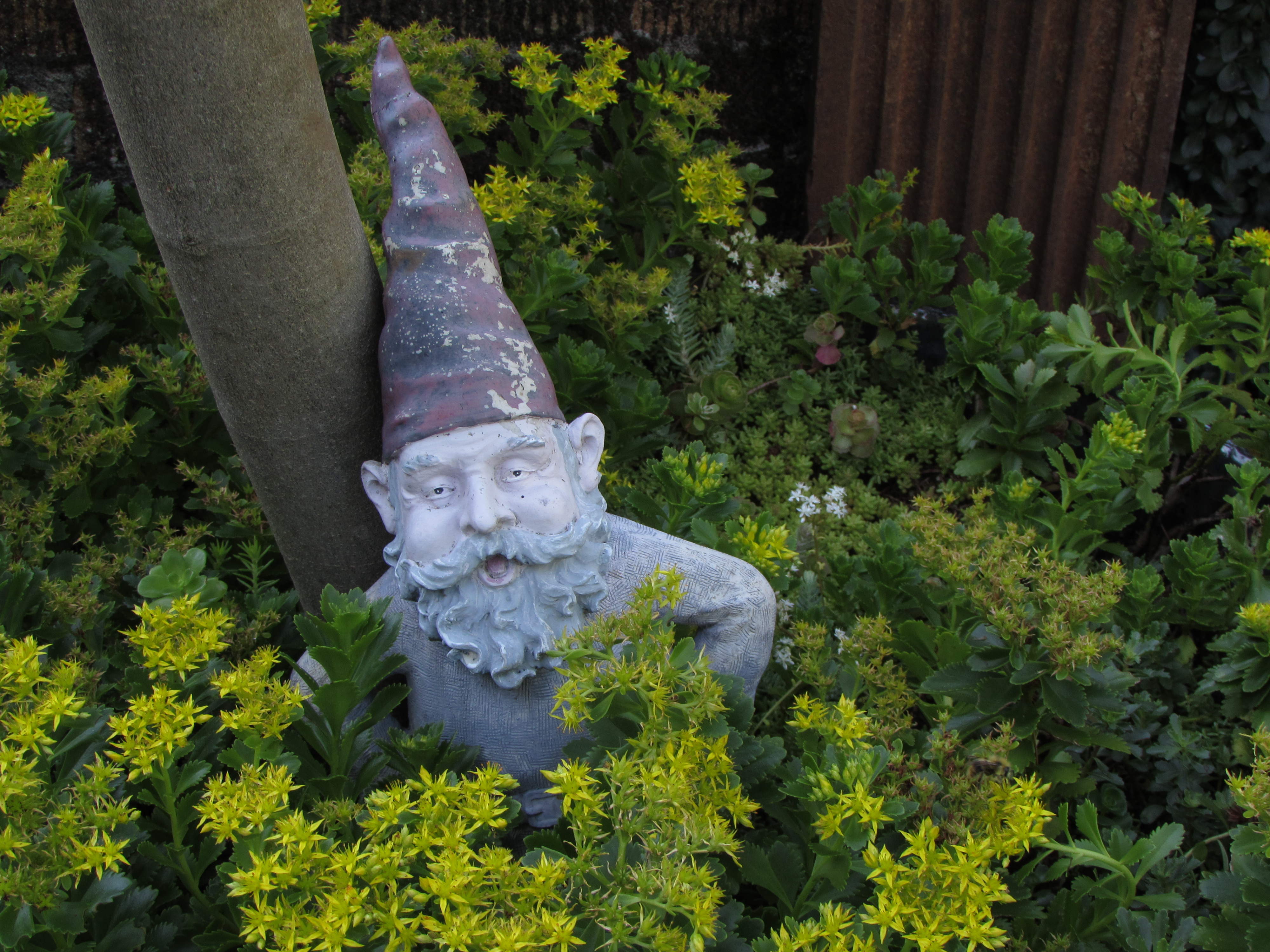 I am replete and inspired but also exhausted. I feel like this sleepy gnome using the tree to hold himself up!