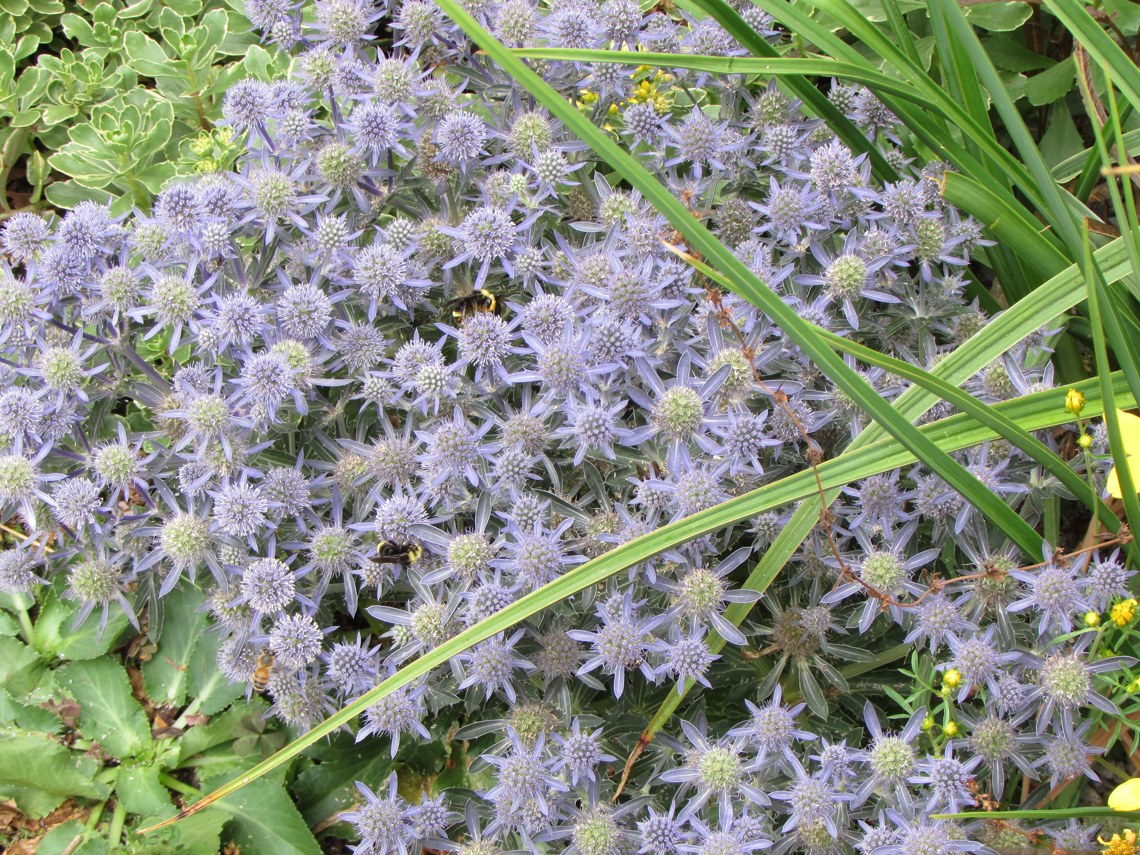 Lovely little plant (forgot the name : ) at Linda Ernst Gardens Update perhaps Eryngium planum Blue Hobbit Dwarf Sea Holly