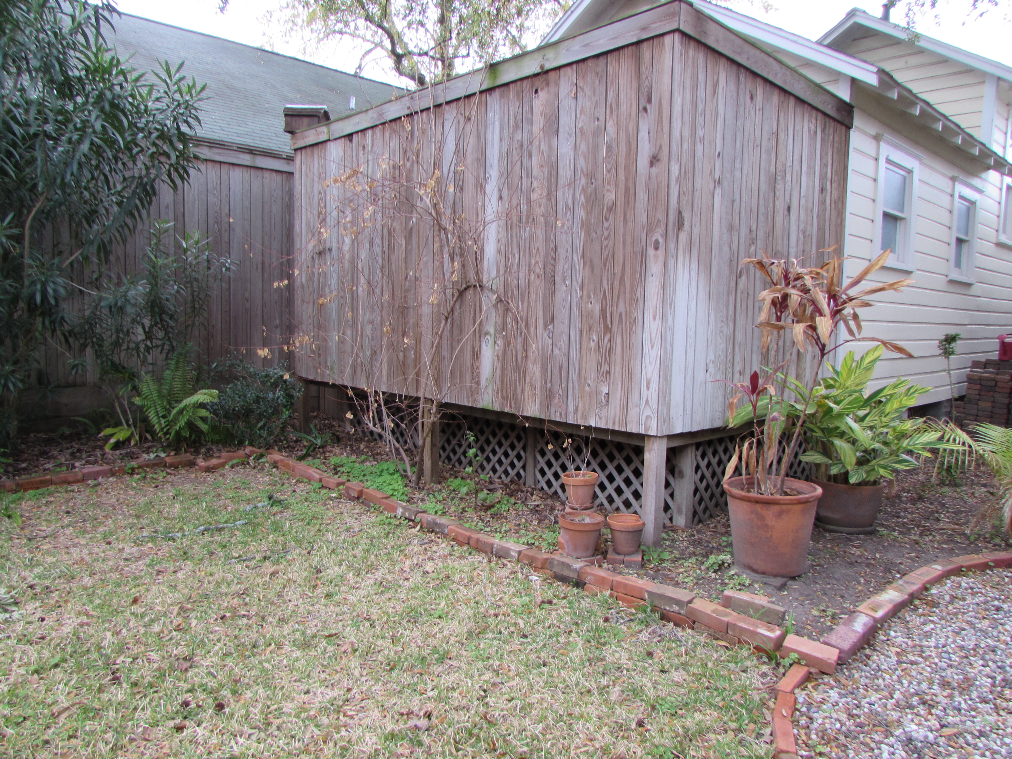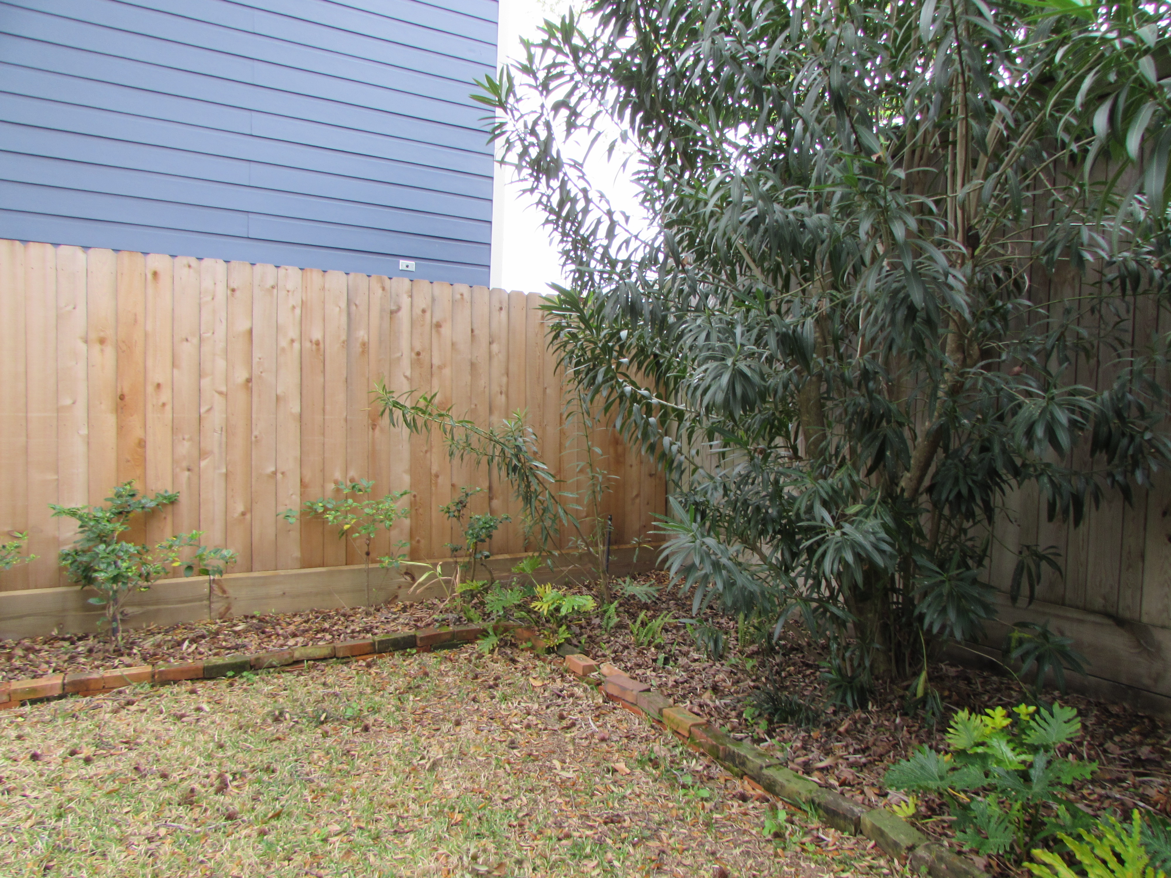 Our latest project was around a lovely vintage cottage here in the Heights. It has a nice corner lot with a wrought iron fence on two sides and garden on three. The old garage had been turned into a little rental cottage and a carport built next to it for off-street parking. Old paver paths had become uneven and the overall look of the garden was a bit messy. The previous owners had taken out lots of specimen plants and what was left needed filling in.