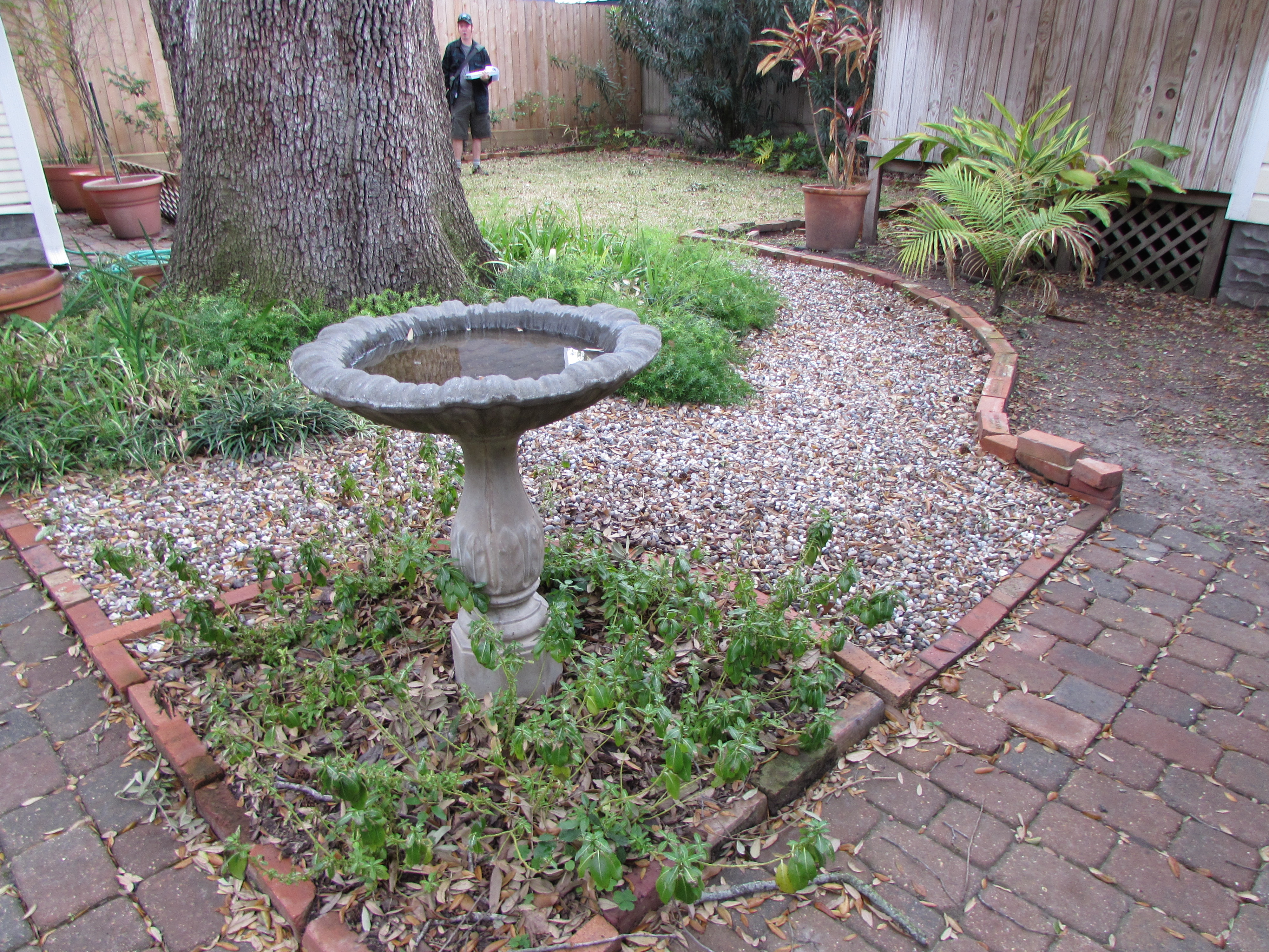 The pavers under the big oak tree where becoming a trip hazard so I decided to re-purpose them into a little patio and BBQ area to the west of the screen porch just off the lawn. This allowed us to change the shape of the bed around the oak. I used rainbow gravel instead of pavers so we could get as much rain water as possible to this big beauty!