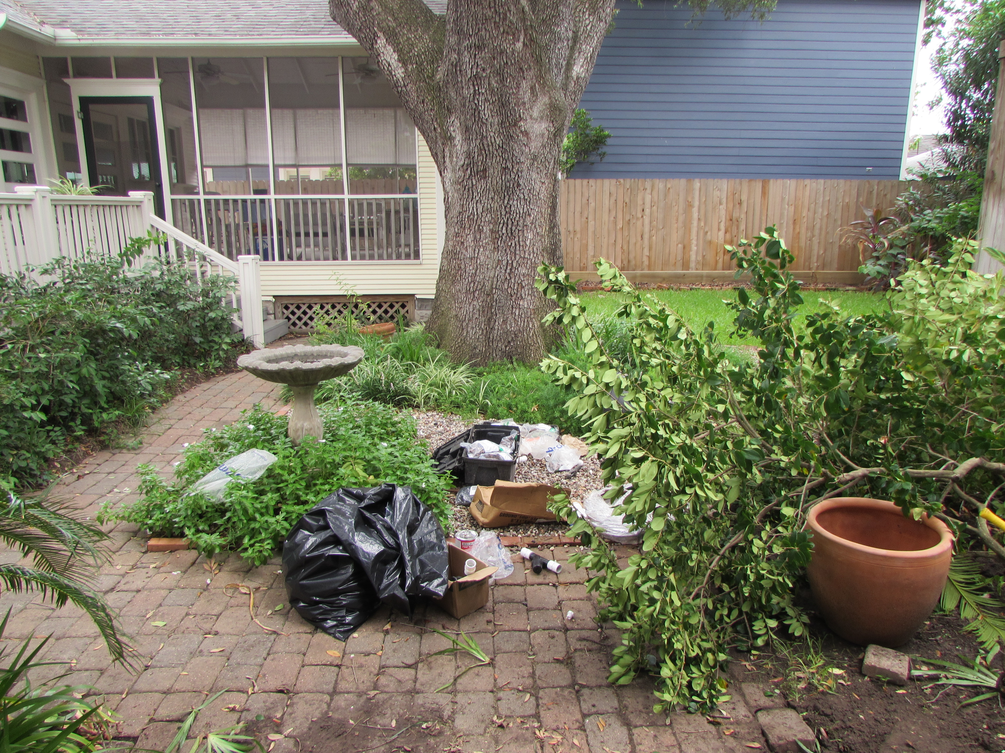 When we come to a property we inventory what is there so we can reuse it if possible. The pavers where fine just not installed well. We found them a nice new home that gives the owners a place to cook outside.