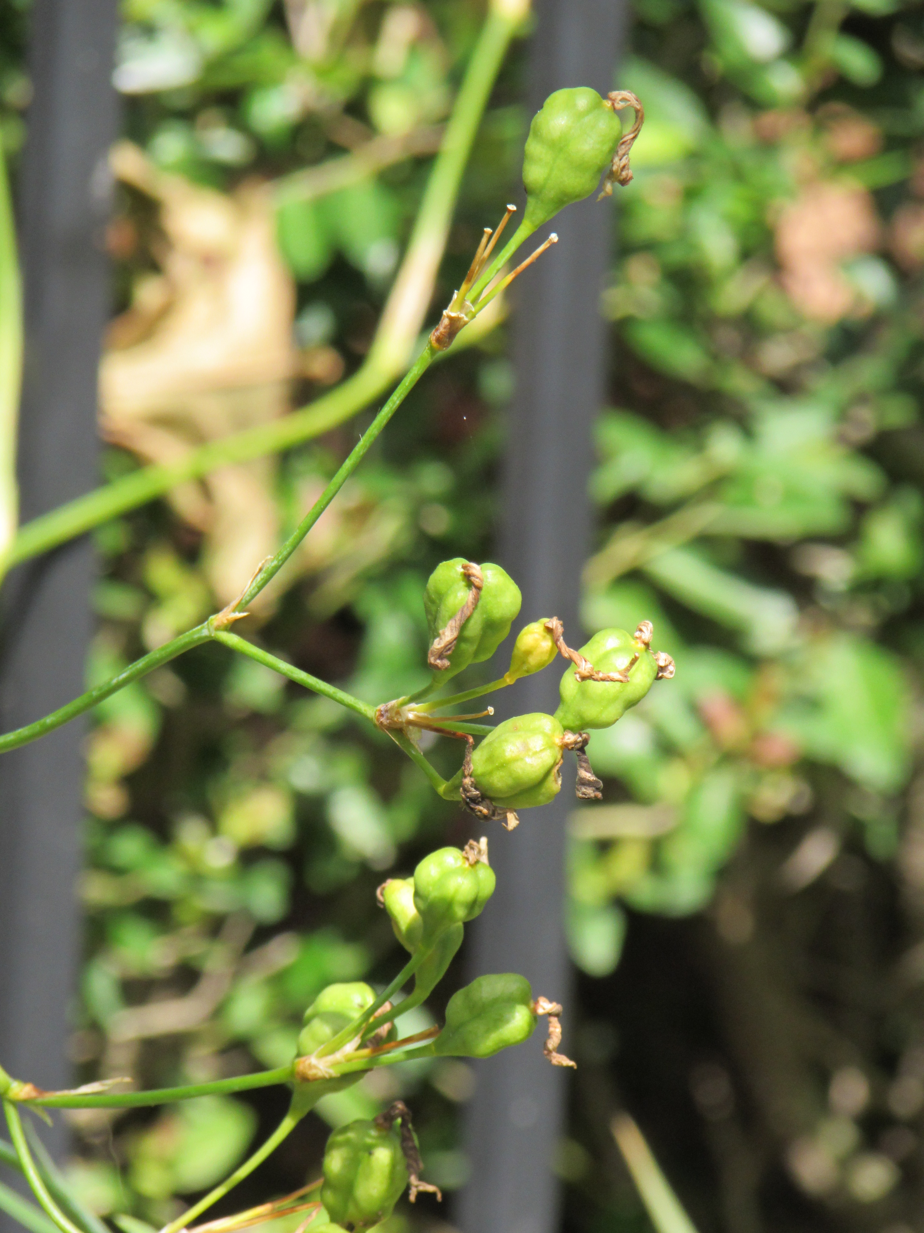 After flowering it goes to seed with pods that when opened have a blackberry-like seed cluster leading to one of its names. The seeds pods remain on the stalks and once they open the seed heads offer good fall and winter interest. Or you can add them to a vase of dry flowers. I am looking forward to seeing them open up.