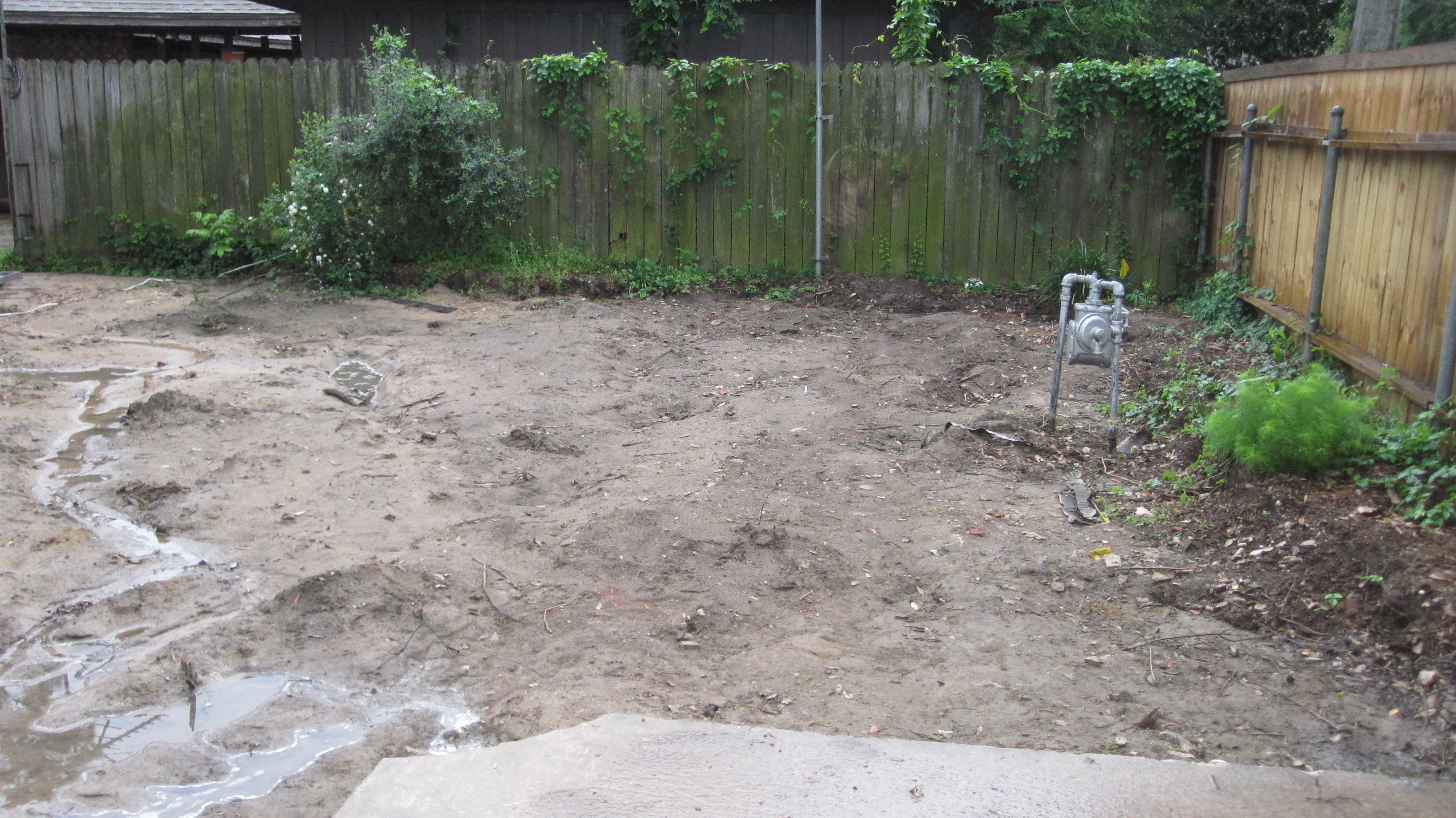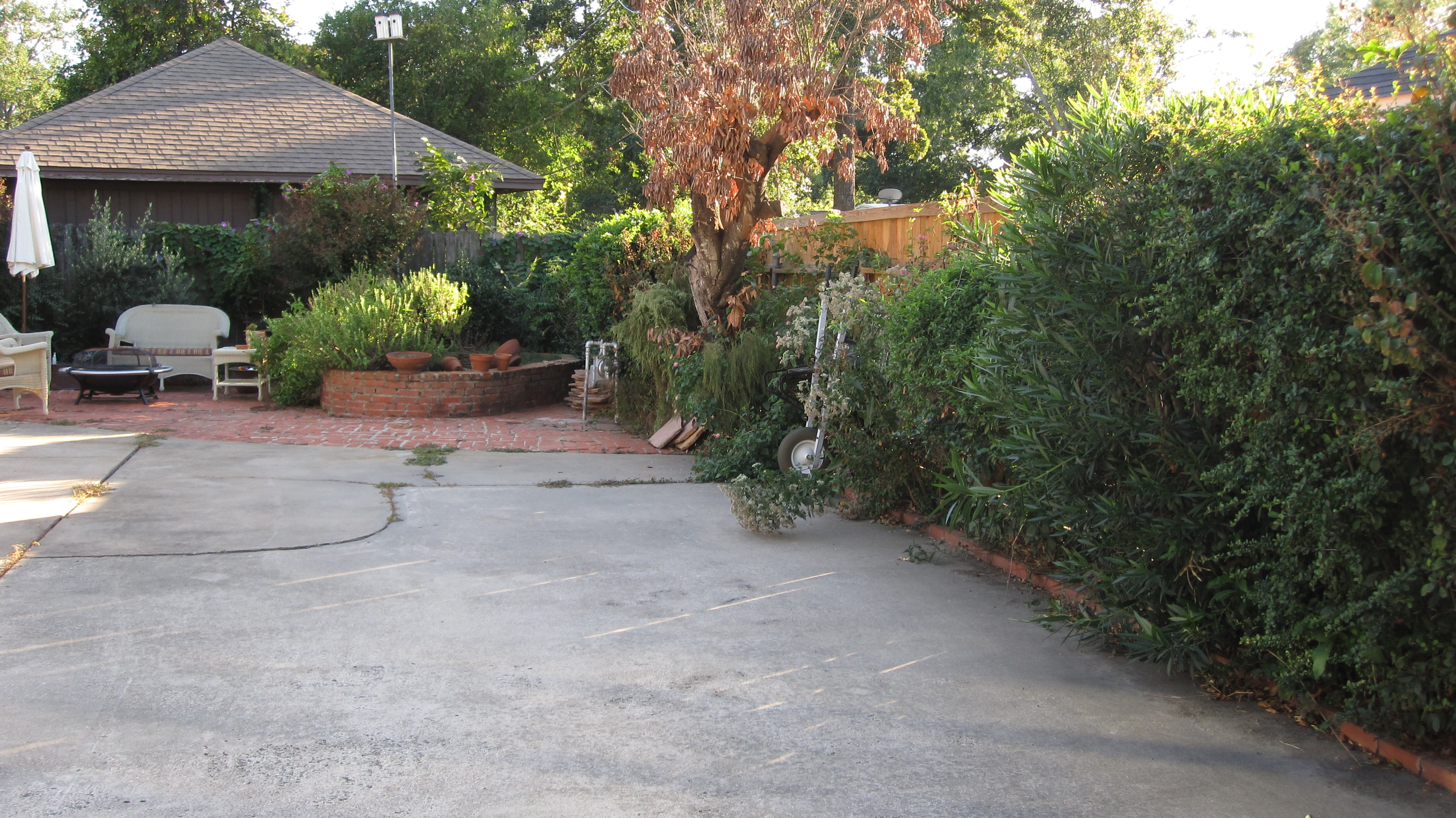 Before! Fall 2011, notice the cement is poured in two sections. We removed the section next to the brick.