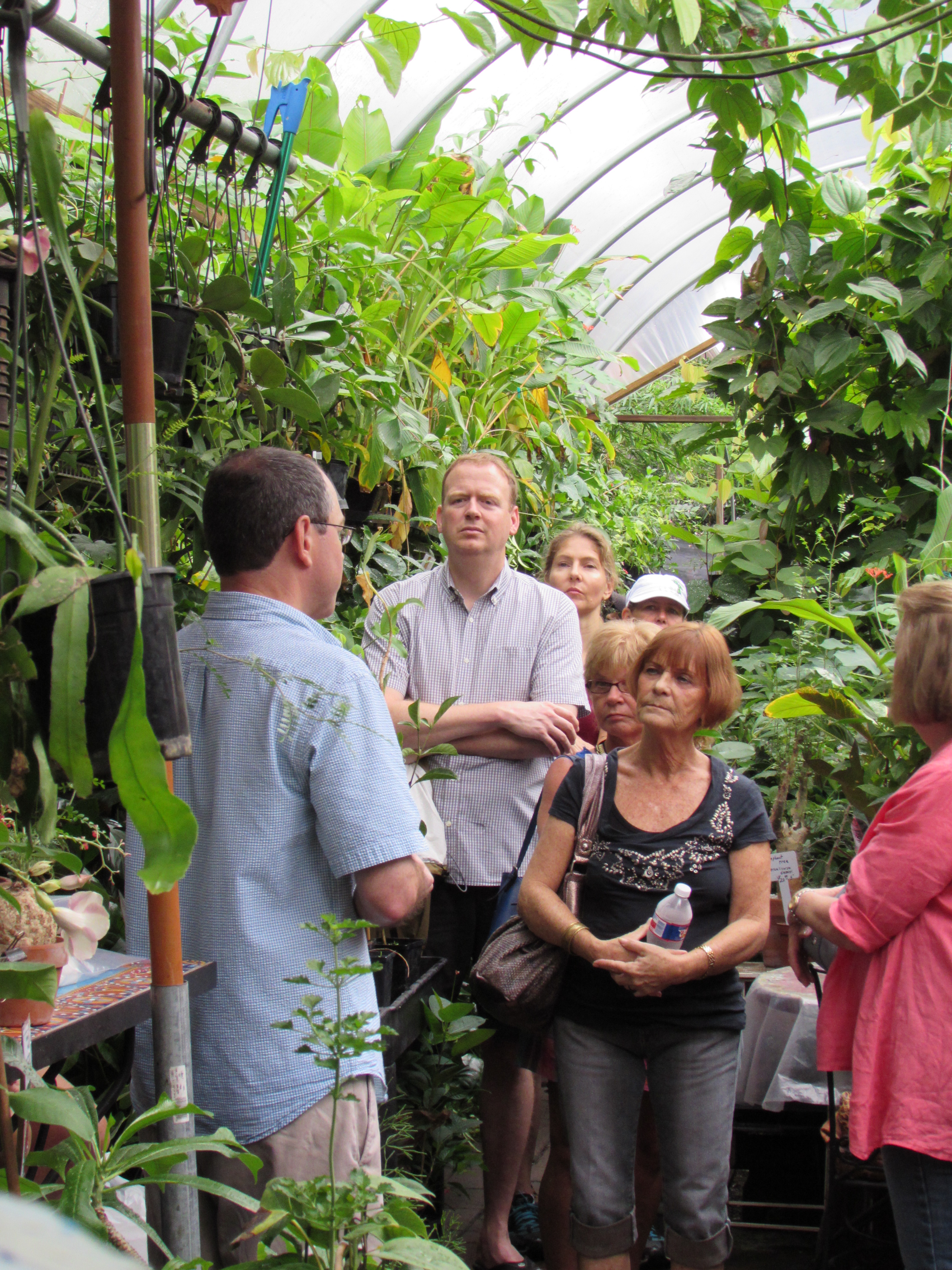 The Heights Garden Club had our September meeting there. We meet the second Saturday of most months at 10 in the morning to tour local gardens. We had a private tour by Wayne DuPont, one of the owners. He talked to us about some of the plants they have in stock just now. The nursery takes up the whole back yard with a year round cover to keep the tropicals protected. Many of the plants are hardy and can be planted in the ground here in Houston. Others are best kept in pots or will need protecting against hard freezes that we seem to have a few times each winter.