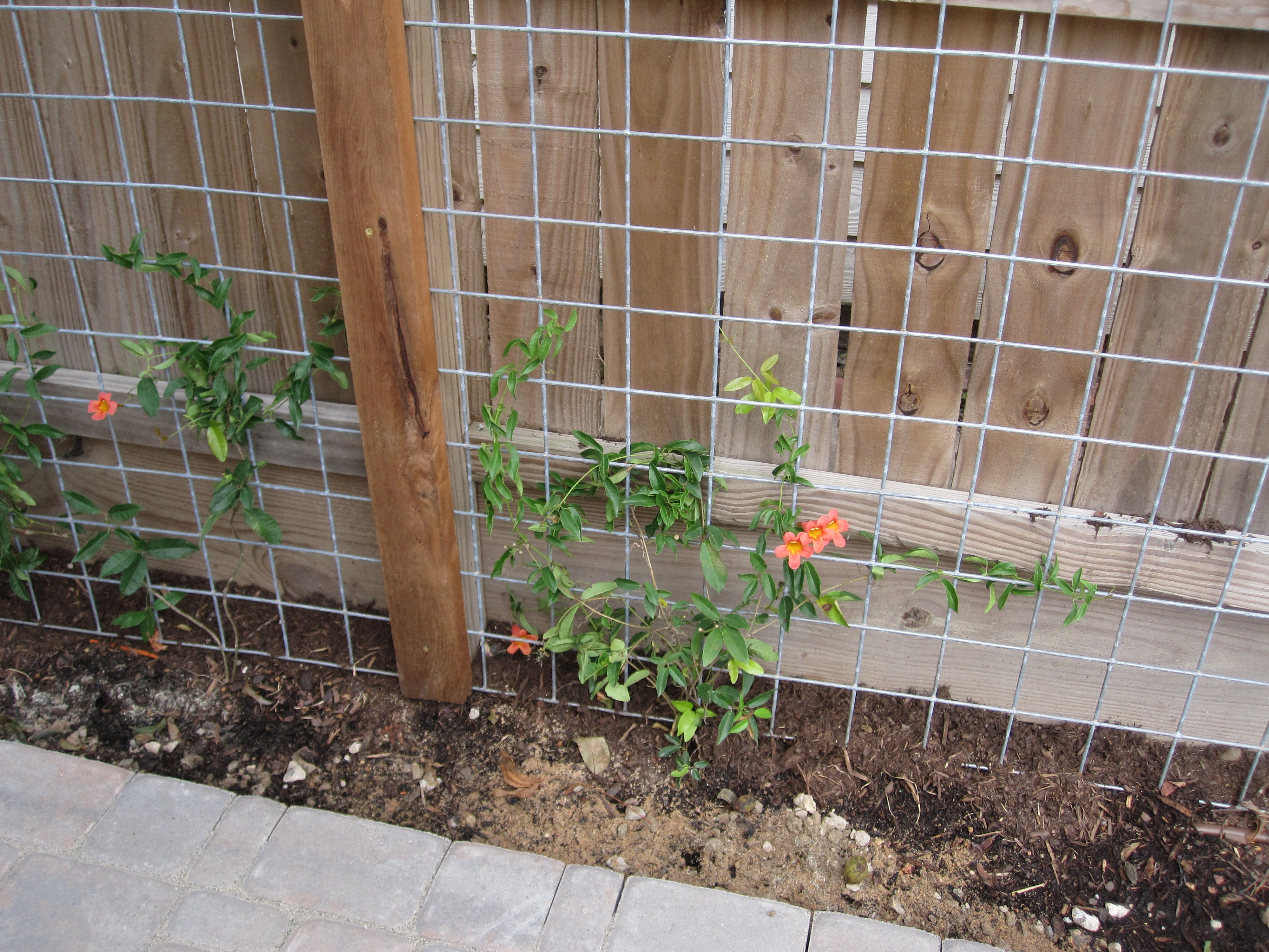 The welded wire is installed, and the tangerine crossvine are spaced ready for planting.Lattice up and Tangerine crossvines planted.