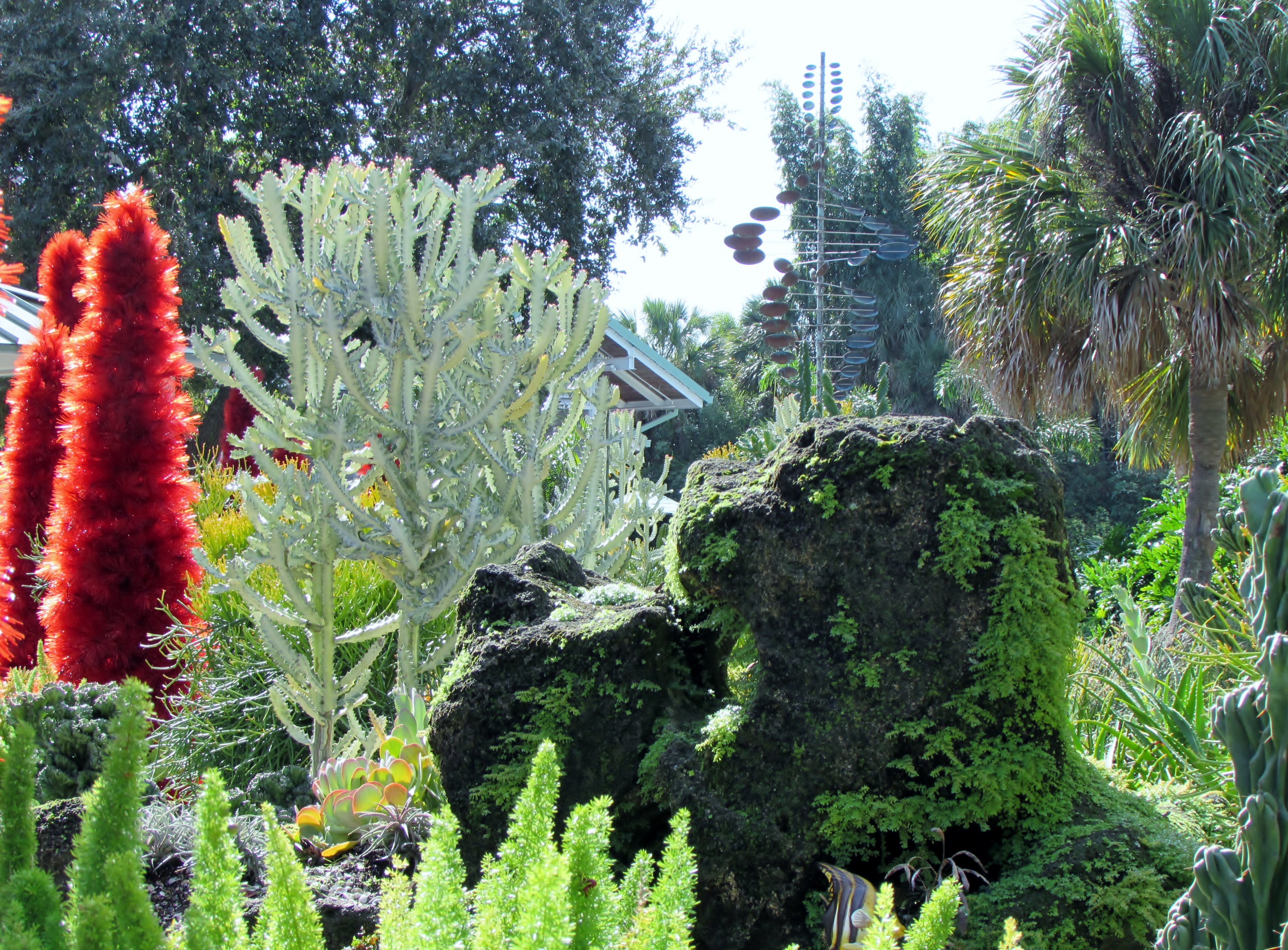 I loved the contrast of red and green. This garden was composed of very low water need plants to create the eerie effect of plants on the floor of the ocean. In the photo above on the left side you can just catch a large Firestick plant or Sticks on Fire, Euphorbia tirucalli.
