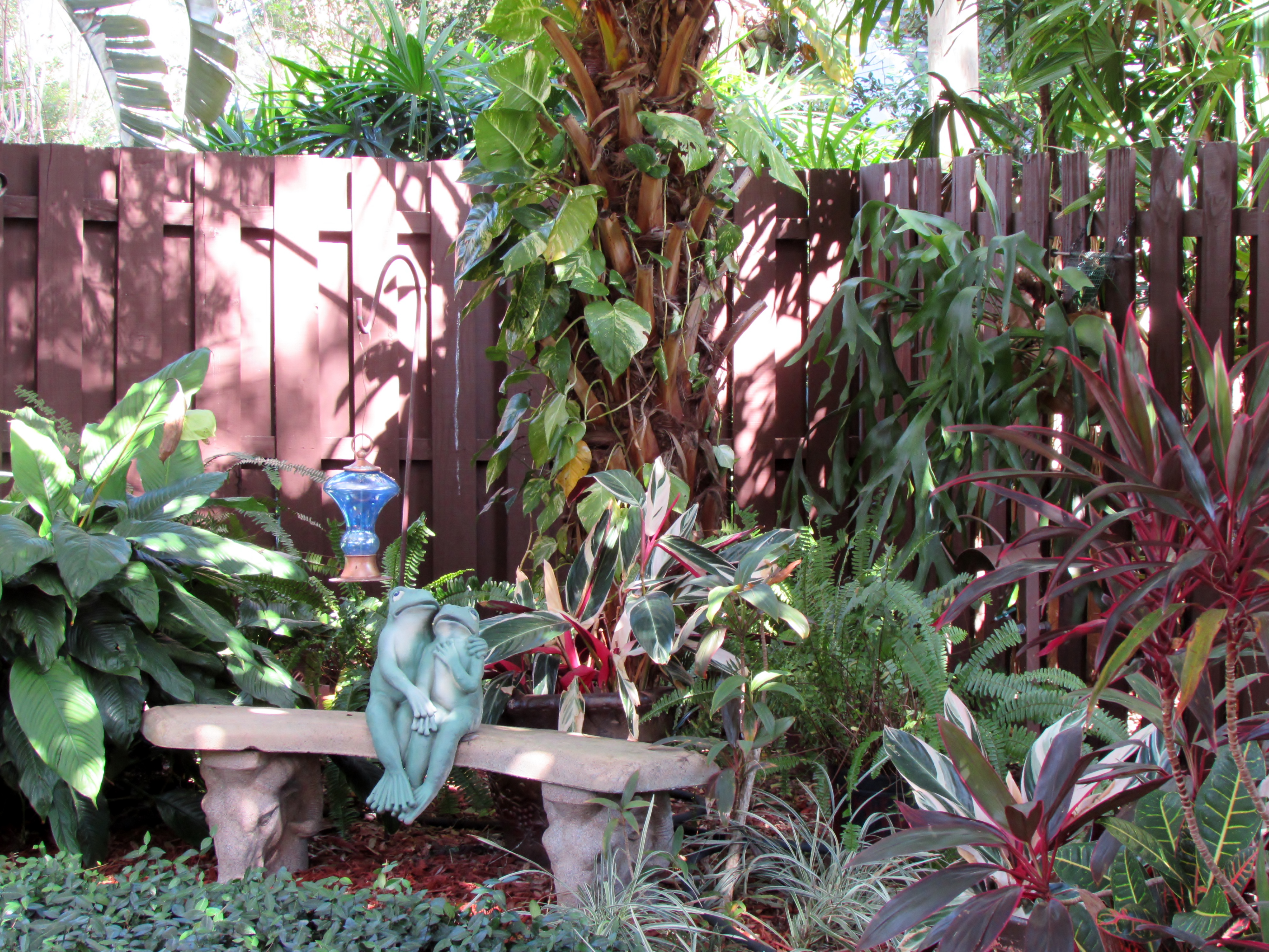 You can see Debra uses many types of bromeliads in her garden. Bromeliads are tropical plants, but some are more cold tolerant than others and can be planted in the ground in central Florida. Many varieties are capable of surviving through temperatures in the low 20’s. I did not get a chance to ask her if she covers any of her plants. I have many of the same varieties and I keep them in a sheltered corner of my garden. If you’re ever in doubt about the hardiness of your bromeliads, cover them with a layer of frost cloth or a blanket to help protect them.