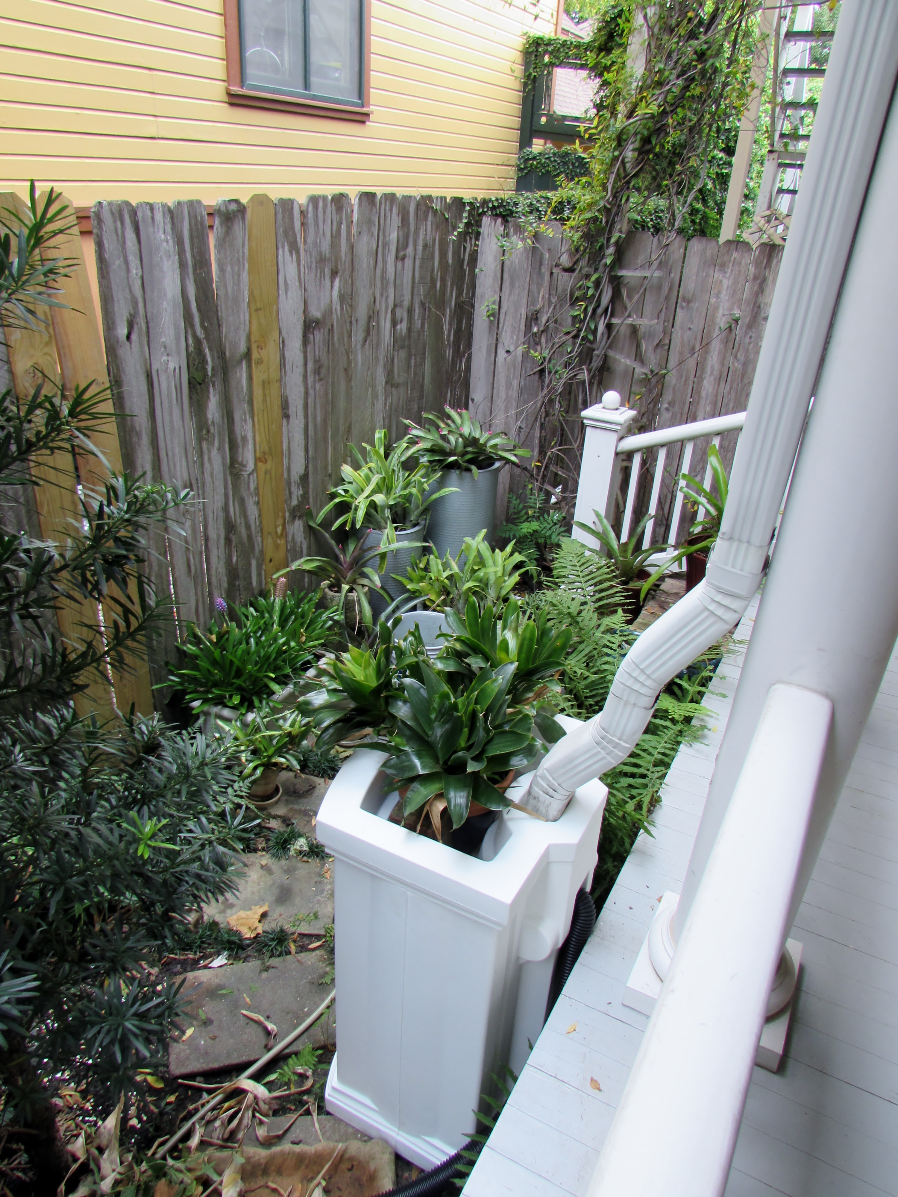 You have heard of rain water harvesting and the growing trend of installing rain barrels at down spouts around your home. I have been reading an excellent book on the broader subject of collecting rain and a variety of ways to keep it on your land. The author Brad Lancaster writes about how to turn water scarcity into water abundance. Here in Houston we nearly back to our normal rain fall and with just a few rain barrels we can get through most of the dry spells. I noticed how much the plants suffered in the drought when we had to water them with the treated city water. Now the rising cost of water from the city water supply and then added drainage fees is making collecting rain water a good way to save money. For those that live in low rain fall areas or are suffering through a drought, collecting rain water and keeping it is becoming more and more important to sustaining the landscape.