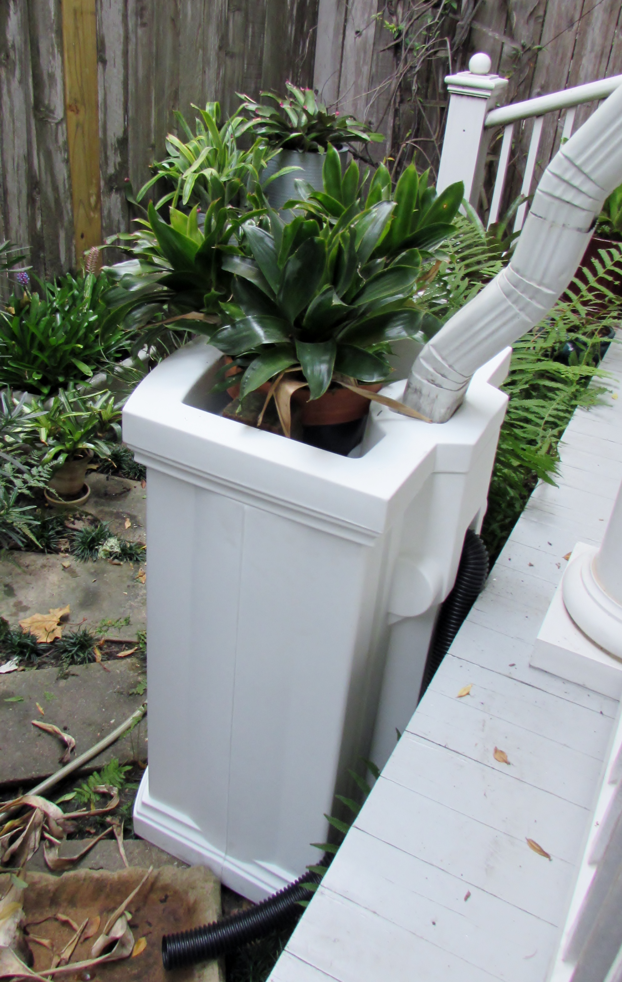 I found this rain barrel at Hayneedle.com and it comes in both black and white. It even has a place on top for planting a plant. I stuck one of my bromeliads there to try it out. What do you think….isn’t it perfect? I have plans for another rain barrel on the south side of the house. And then two linked ones with very flat profiles off the side of the garage to collect rain for our raised bed herb and vegetable garden. Just have to save up for them!