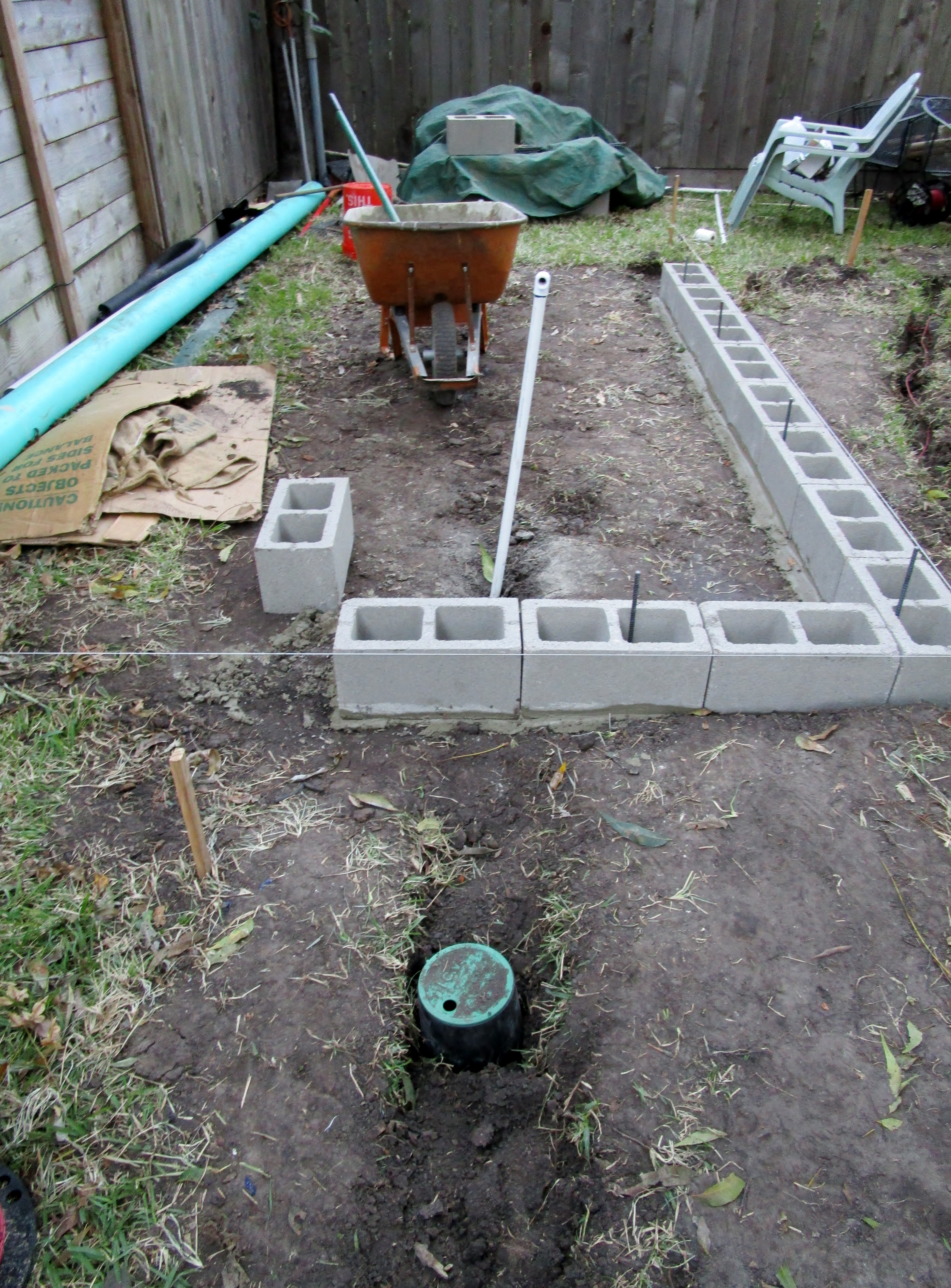 Building the raised herb and vegetable bed.