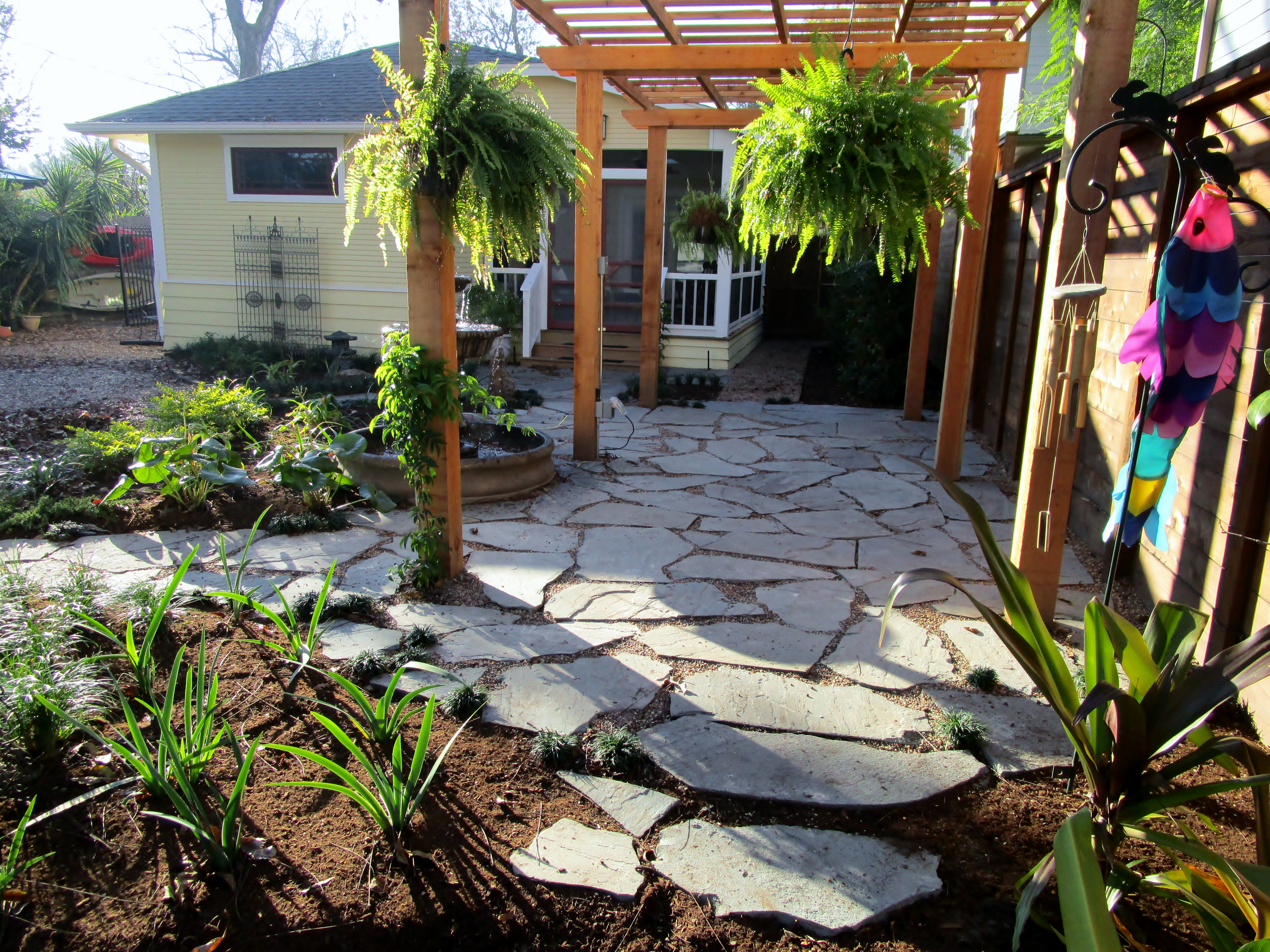 pergola and flagstone patio and paths