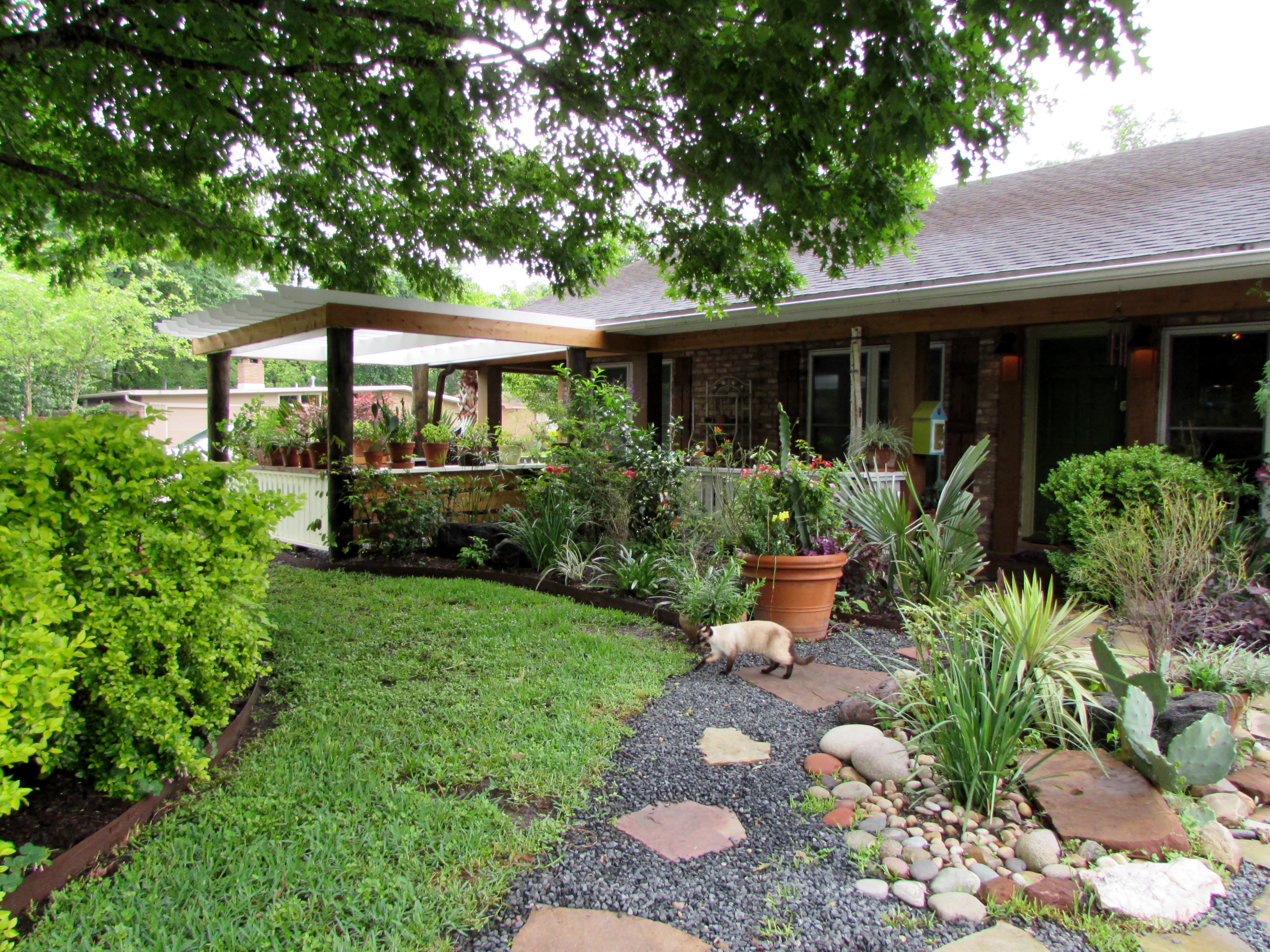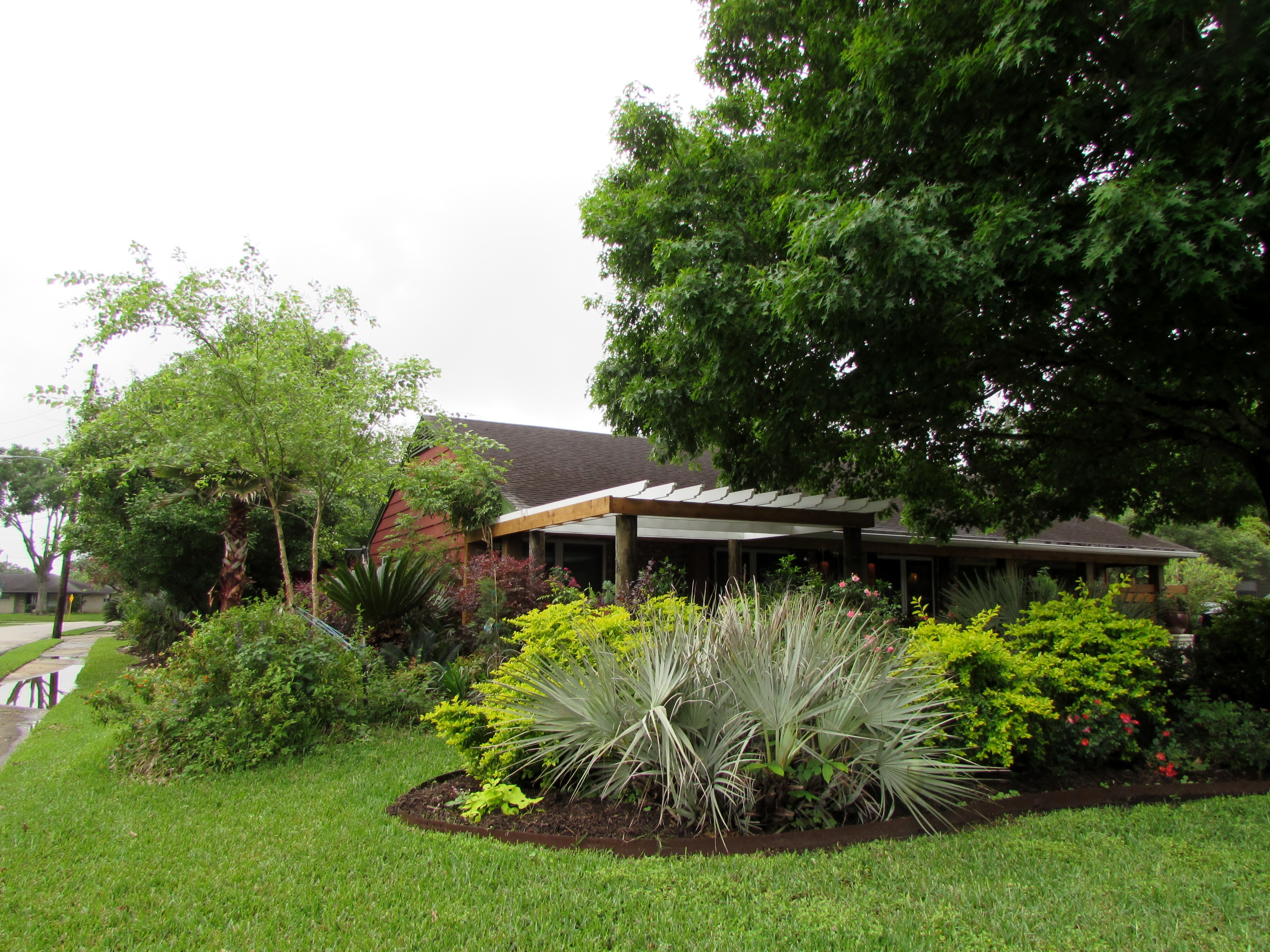 I found an article from our local newspaper that sums up his philosophy in his own words. “With summer’s horrific heat, gardeners may be tempted to shower their blooms and blossoms with attention, particularly when it comes to watering. But that can be a bad thing for both your garden and your water bill. “If you cater to them,” says Jeff Law of Kabloom Landscaping, in the Heights, “you get a co-dependent relationship, like those kids on drugs who won’t leave home. “Not that you really want your foliage to leave, you just want it to leaf, but that’s where tropical xeriscaping comes in.”…”The term Xeriscape, a registered trademark, was coined in 1978 by the Denver, Colorado water department, by combining the Greek word for dry, xeros, with landscape. Like that other great idea that starts with X, the practice caught on, it entered the vernacular as a verb. Xeriscaping is about planning what works in your environment in order to conserve water and energy while still keeping a lush, beautiful garden. And Law is an expert at it. – The Leader, (Northwest Houston’s Community Newspaper) Pg. 2, August 21, 2008