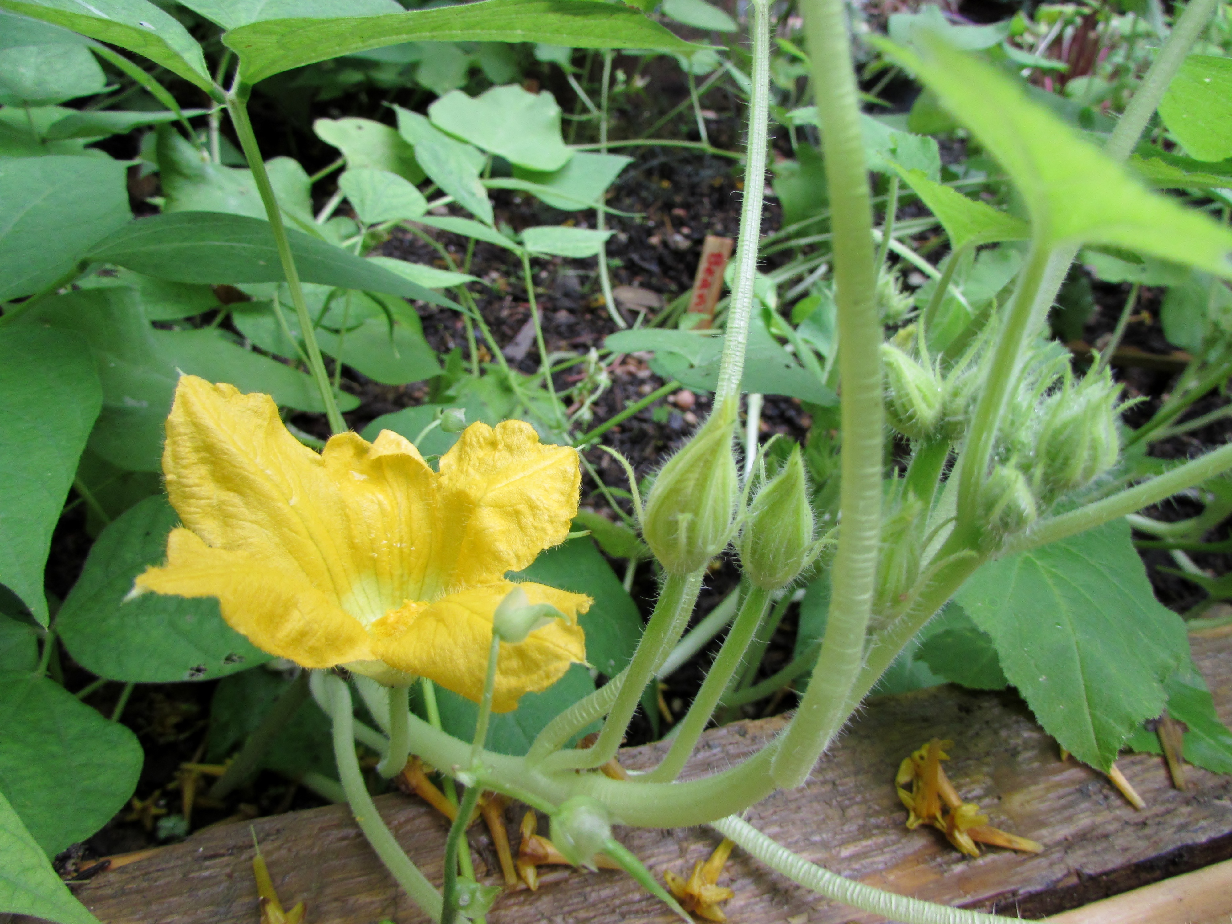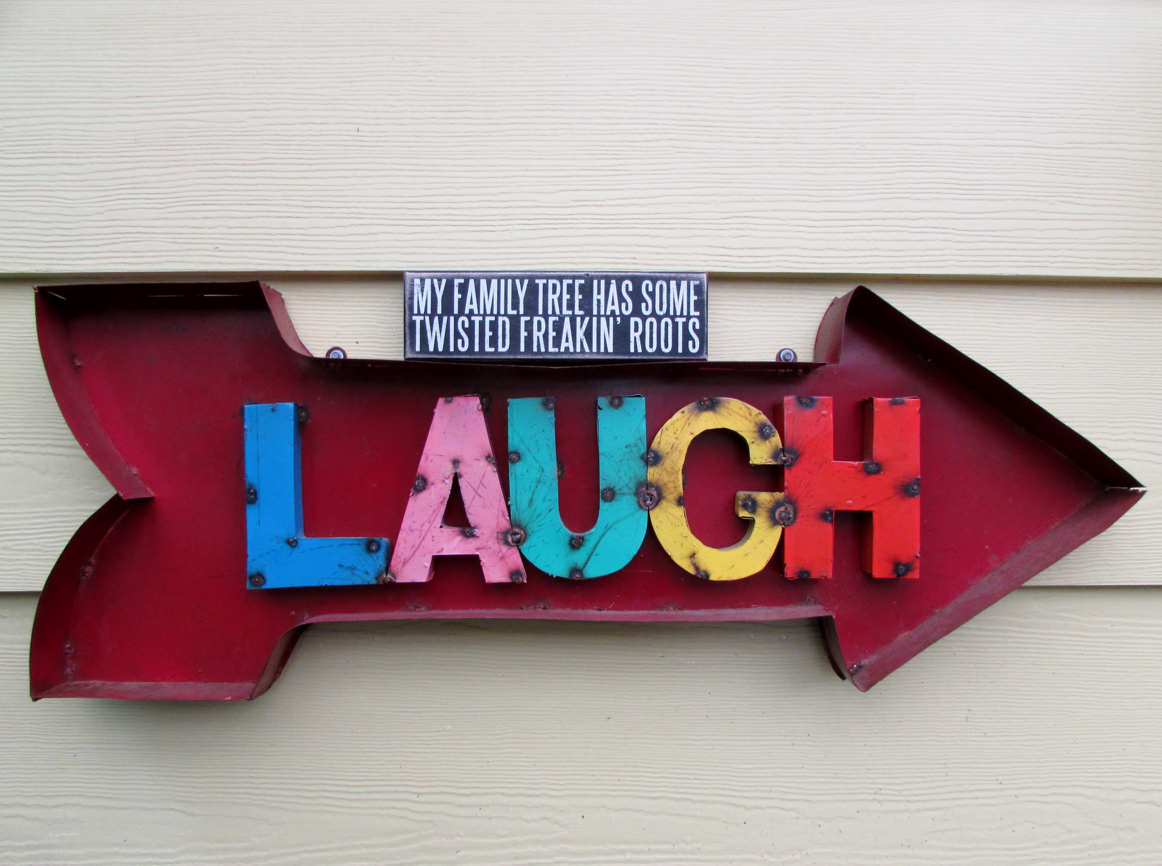 This is certainly a garden with loads of personality. I like all the artistic touch and the whimsical things like the gate to the dog run, the Adam & Eve art on one of the doors and the laugh sign.