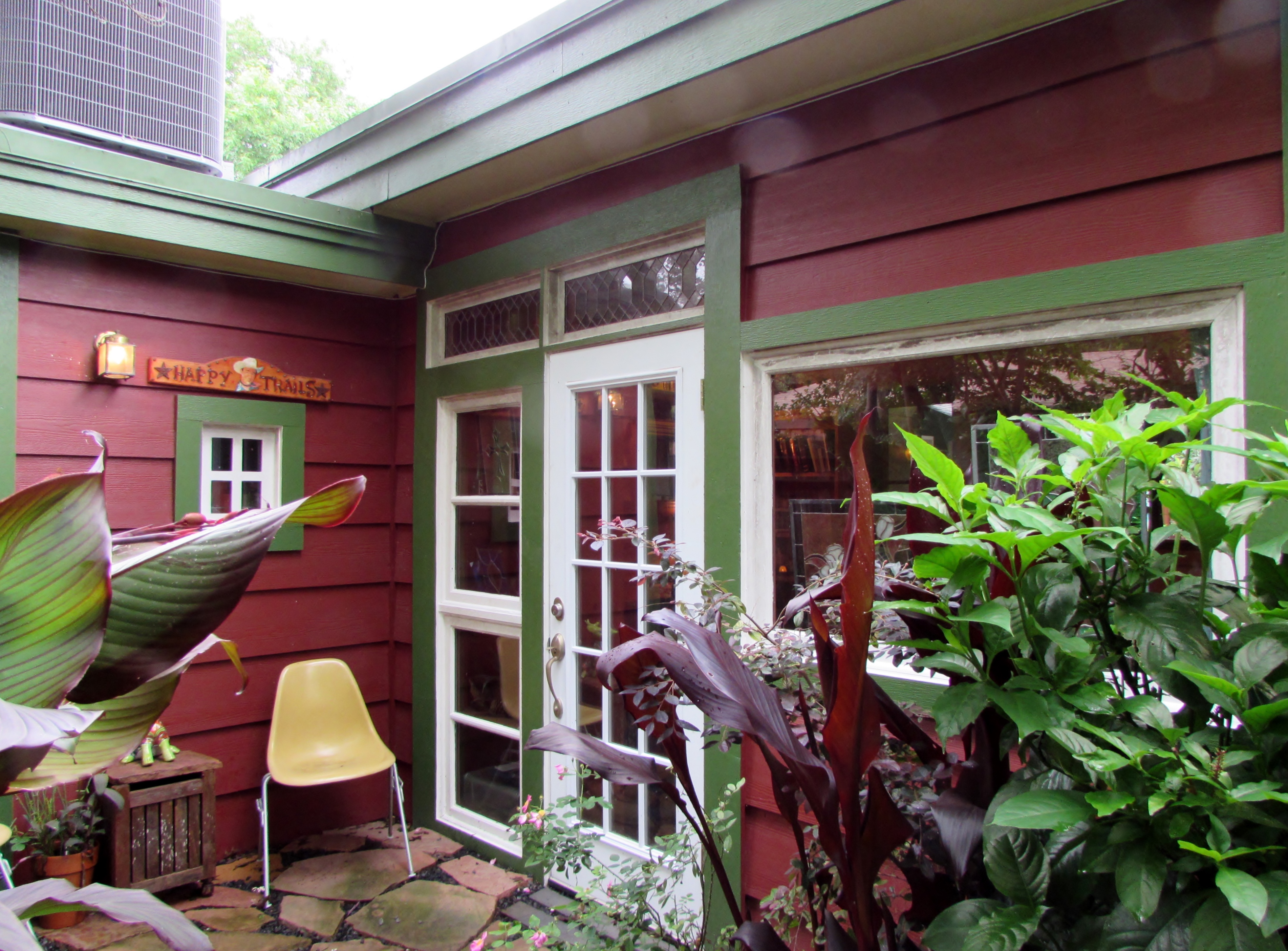 The view as you come out the french doors on the north-side of the garden room. This is a garden that is lived in. The tiny ranch house is big enough because you can live outside too!