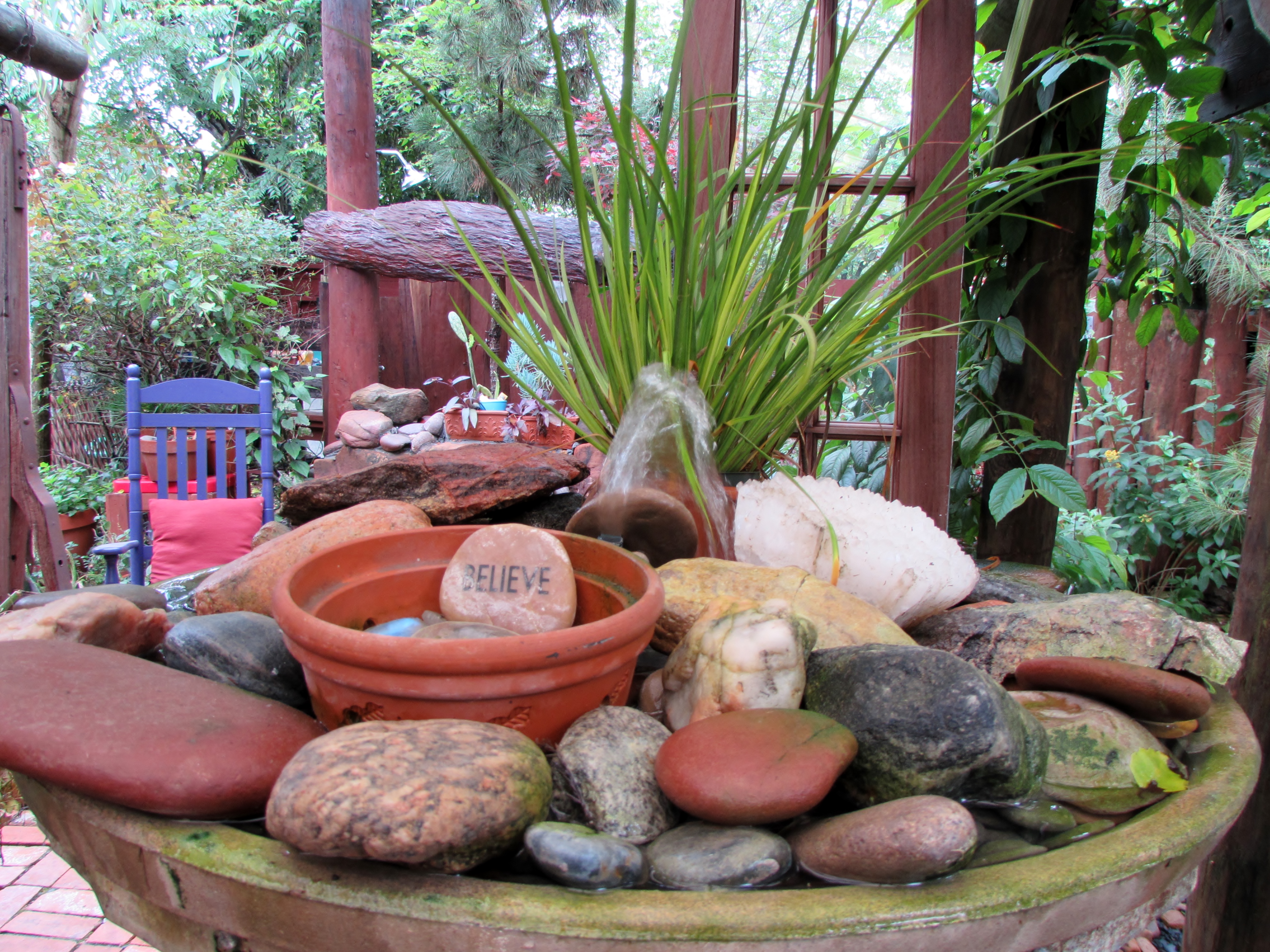 Found art, Garden Conservancy, Jeff River Law, Saint Francis of Assisi, Sharpstown Houston Texas, Xeriscaping