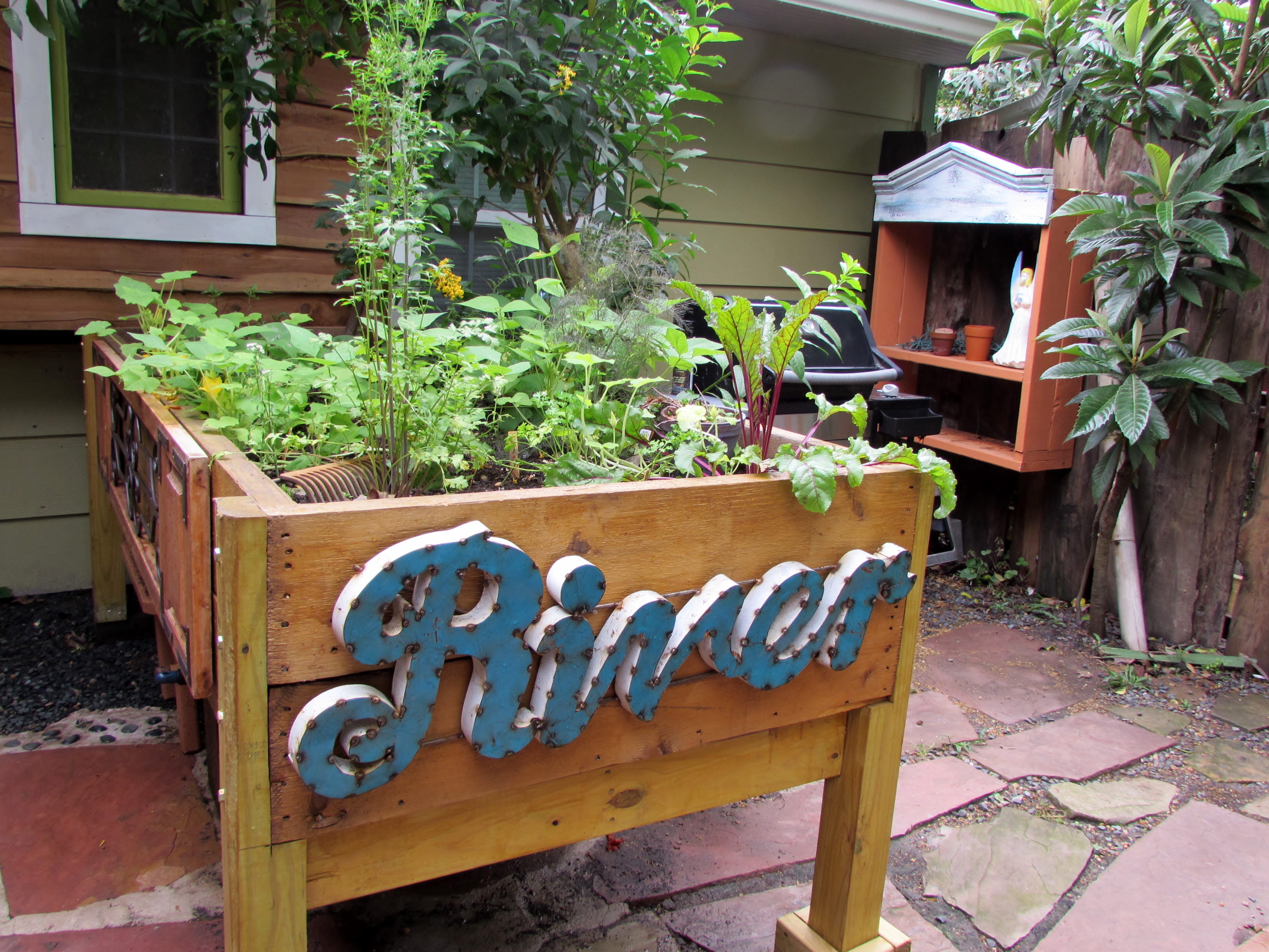 This would be perfect for someone that is not able to bend down. A bit lower and it would be perfect for someone in a wheel chair. I especially liked the mix of plants and rusted tools. I have a love affair with tools!