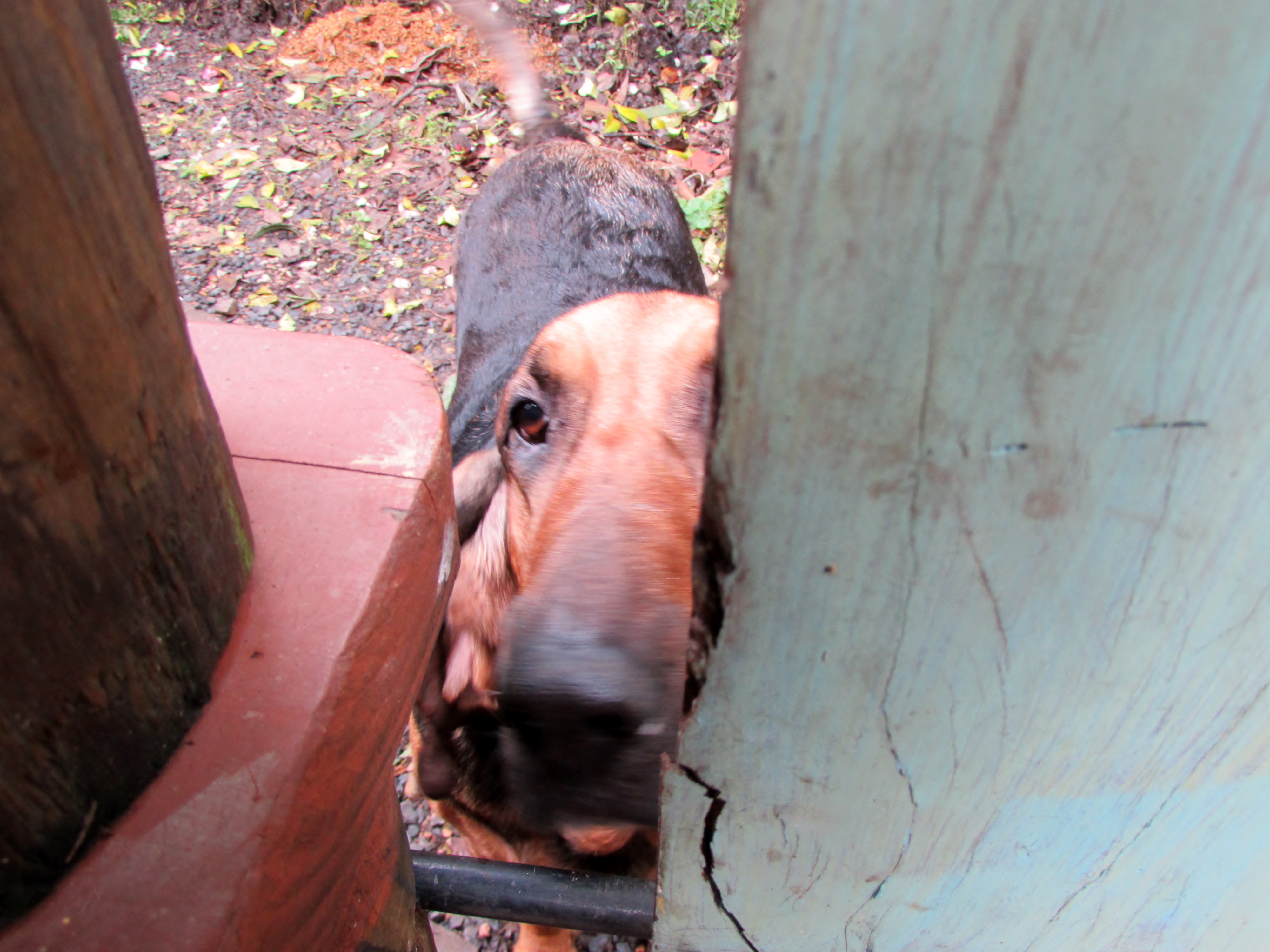 Above is the door to the dog run just past the outdoor shower. I got to peak through and say hello. The dogs did so want to be part of the party! I have followed along with the saga of how Helen came to join the family. She is one very lucky dog to end up at Jardin de la Paz!