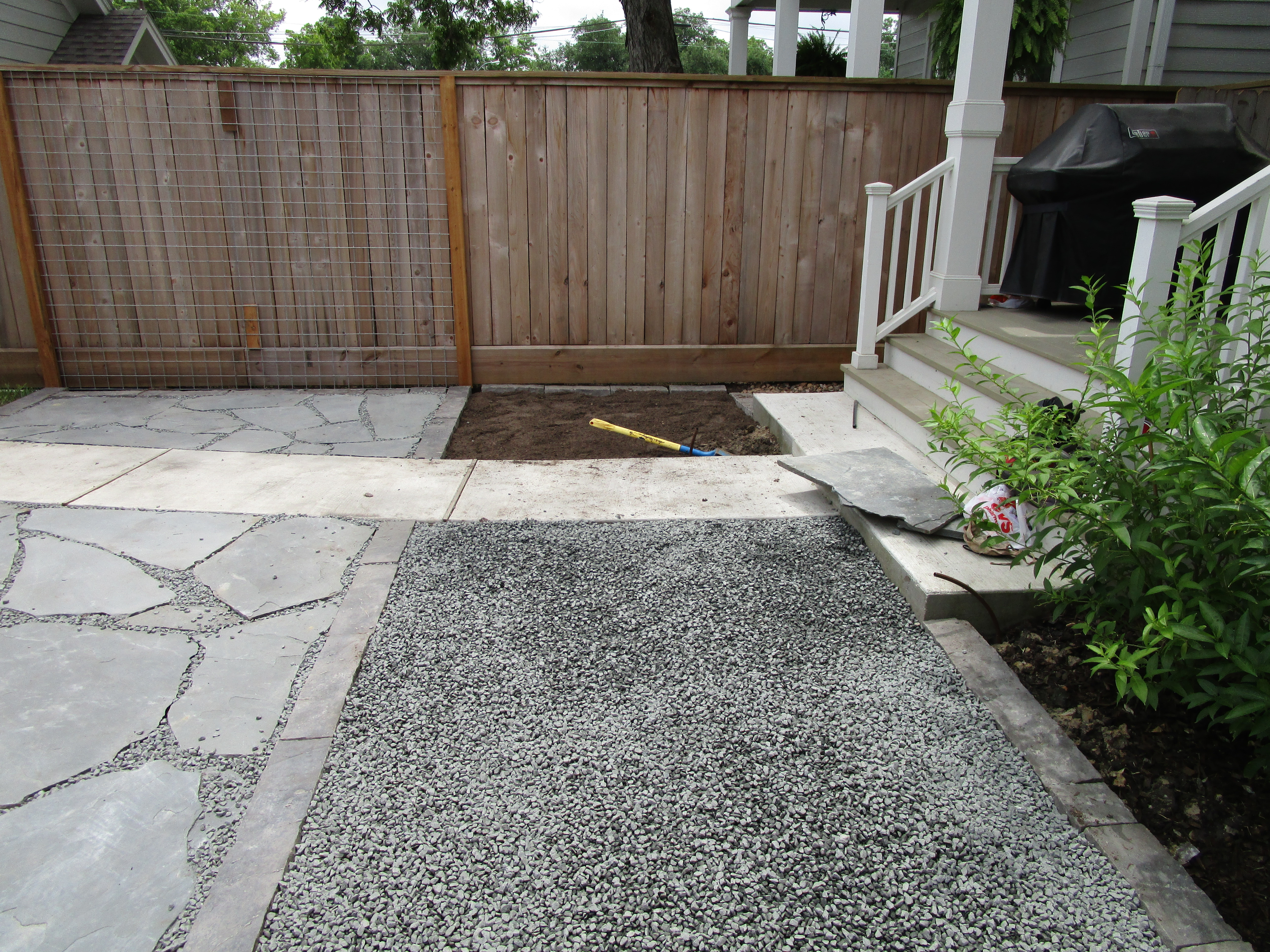 Here is a view back towards the house. I can’t wait to see it with the vines grown up and defining the patio further.