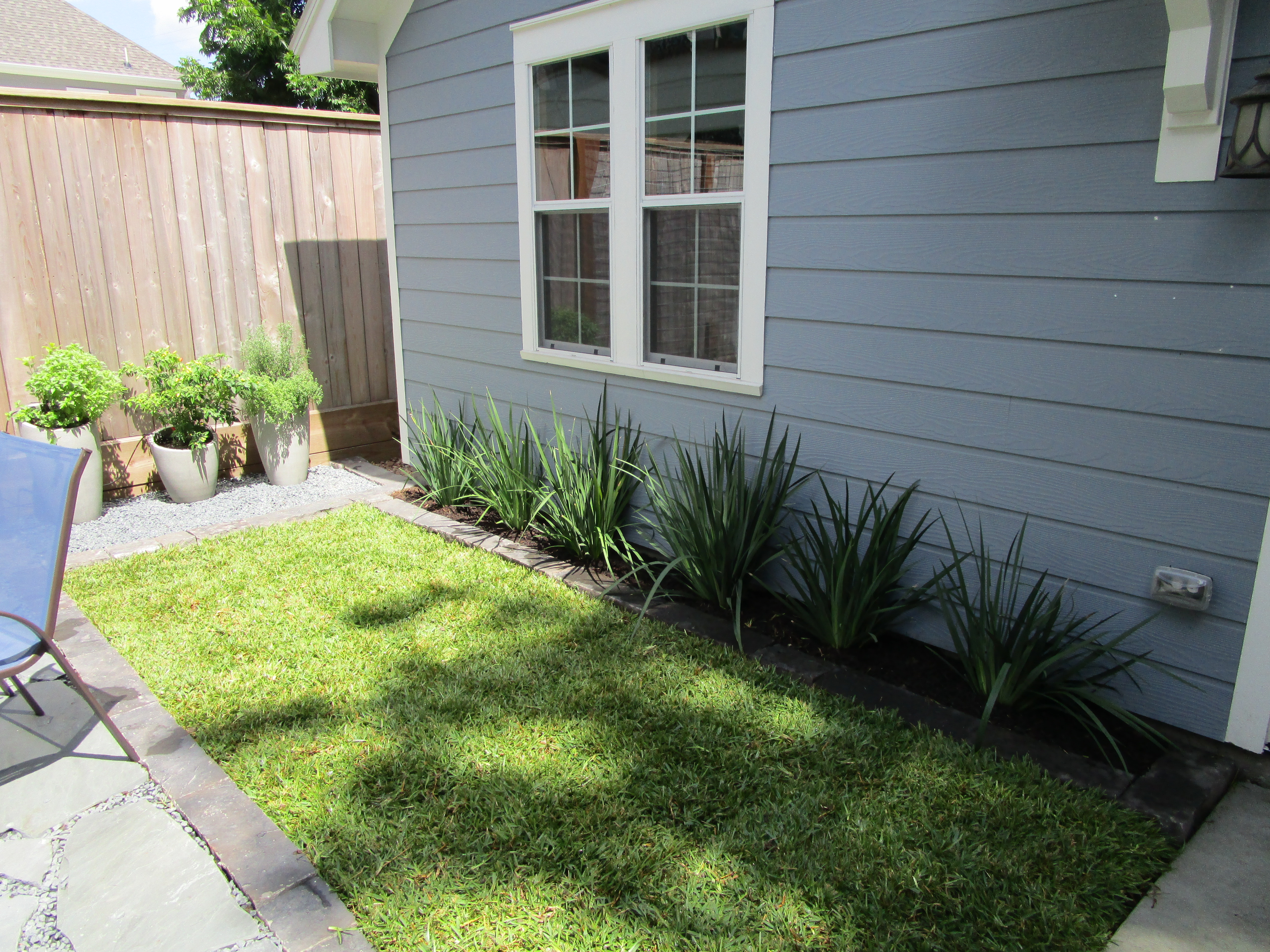 Nice job, Laurin! I did have a little chuckle when I read “easy to care for” and modern clean lines with a cottage style home. You definitely managed to pull this off. I really like that you placed the patio away from the house. Nice. I also love the African irises. I had those when I lived in Austin. They are wonderful year round! ~Julie