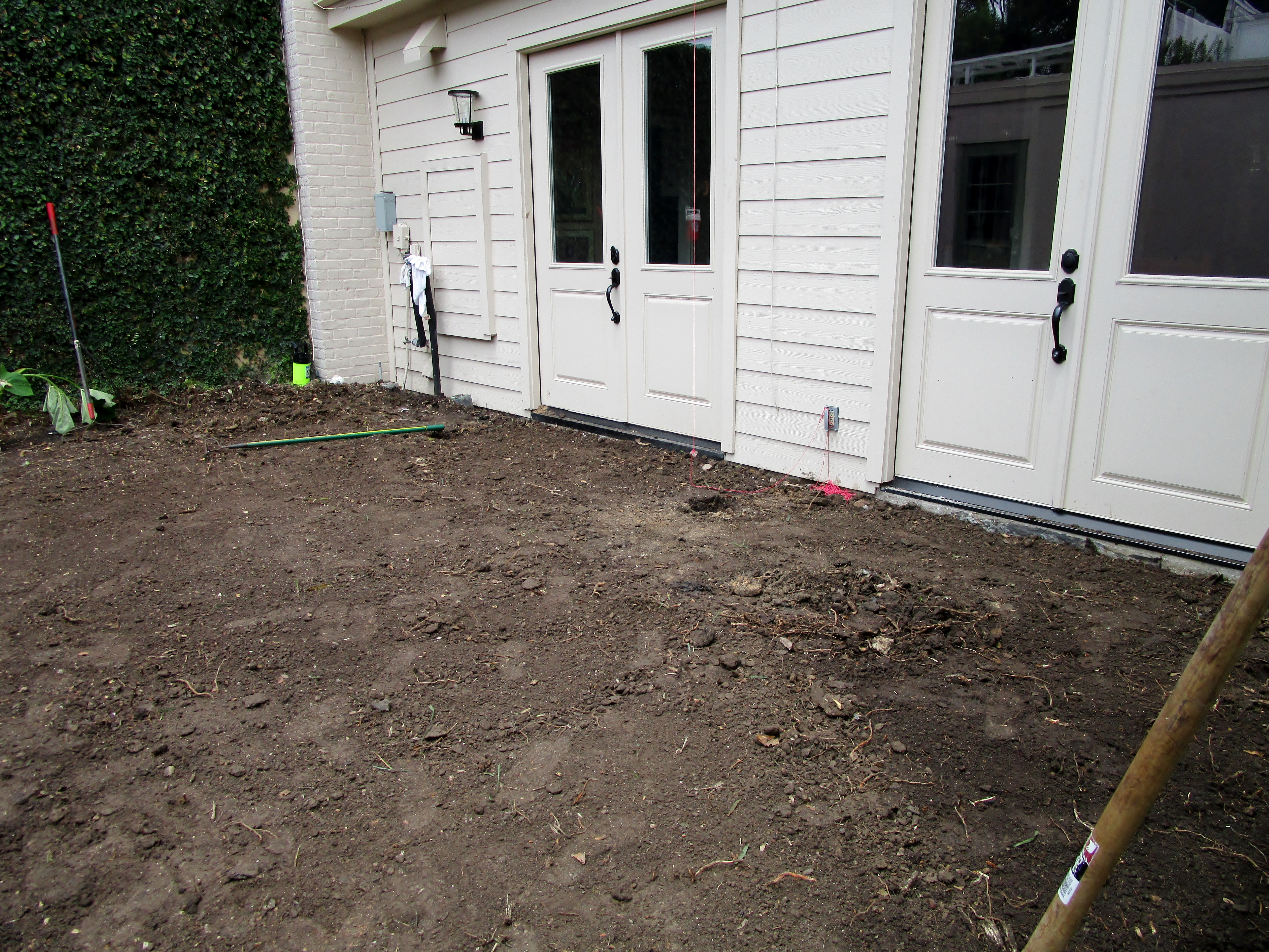 It gets worse before it gets better. Whoever installed the flagstone patio loved concrete. In some places the concrete was up to eight inches thick. Even after we took out all of the flagstone, and most of the concrete, you can see how high the soil was