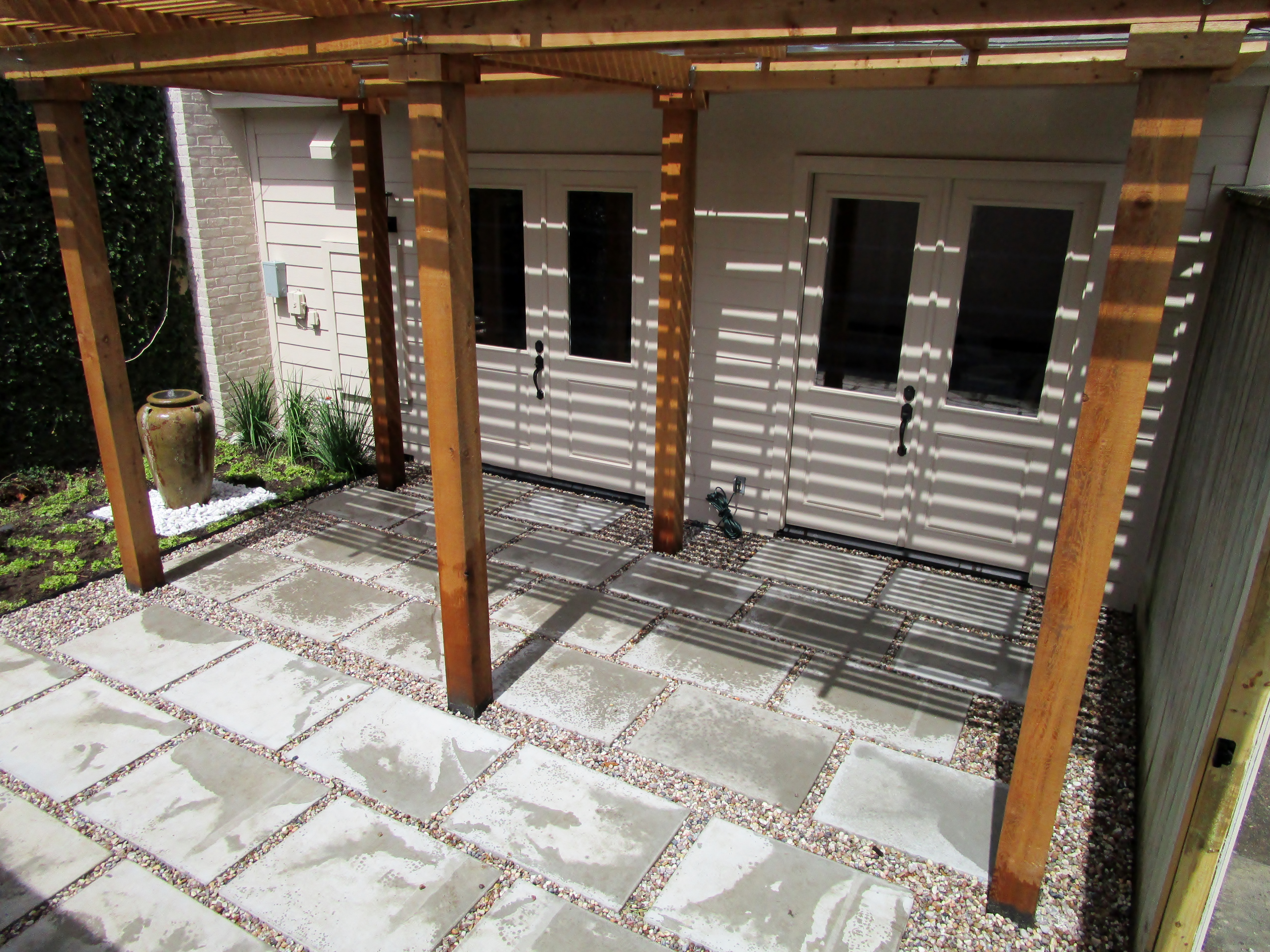 Yet another lovely project. I really like this look. It feels inviting. Pretty nice to have a mature vine already filling that wall. But ugh … what a nightmare it must have been to remove all that concrete from such a small area.