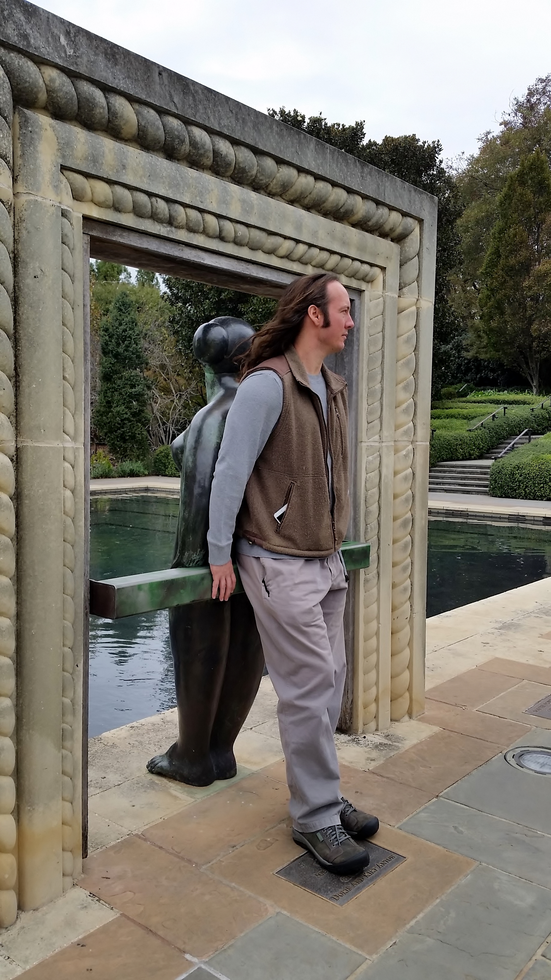 Being proper tourists we took a few pictures of each other. Here is Shawn mirroring the beautiful bronze sculpture in the section called A Woman’s Garden.