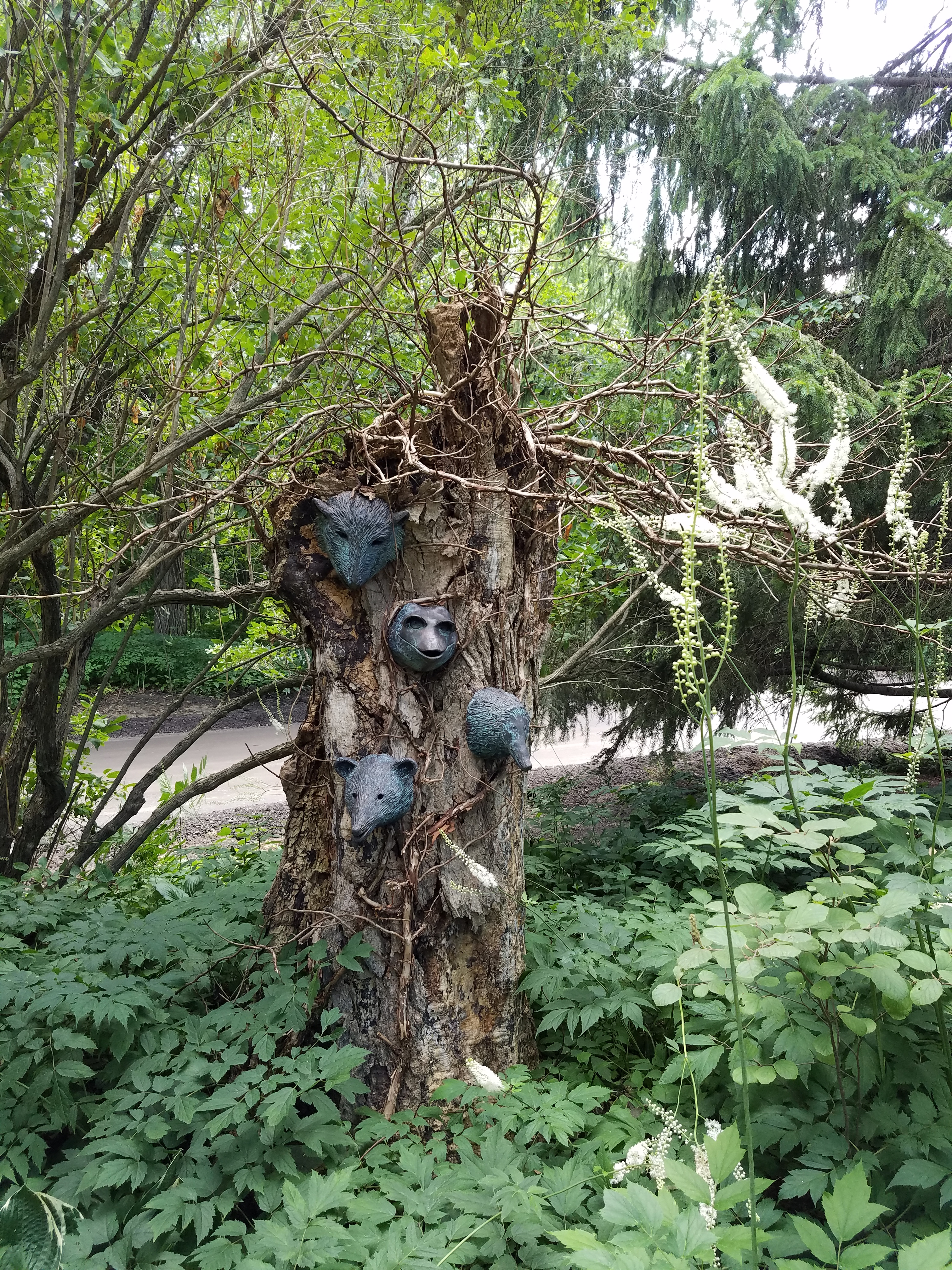 After lunch we headed to what the neighbors call “Latham Park”. It is the home of Dianne and Dan Latham. This garden is truly a labor, with emphasis on the word labor, of love. They work hard and even bringing many of the plants, along with the goldfish inside to winter. They have so many different kinds of plants, shrubs and trees it is a real visual treat. The gazebo and pond make a inviting destination to sit and enjoy the garden. Diane said to us that Dan tries to sit and enjoy but she usually has another task for him : ) . Dianne is an active member of the North Star Lily Society. She had so many lovely lilies.#GBFling2016 My favorite was the fish pond with its lotus flowers and seed heads. #GBFling2016 lotus flowers and seed podsEach year they bring the fish in for the winter and come spring they have more than they started with and have to find them homes with schools and others with ponds. #GBFling2016 gold fish The mid-afternoon found is a the beautiful Noerenberg Memorial Gardens on the edge of the tranquil Crystal Bay on Lake Minnetonka. The home was torn down on the estate of Frederick Noerenberg, the founder of Grain Belt Beer.  His daughter Lora Noerenberg Hoppe, one of his 5 children, was the chief horticulturist of the gardens for a number of years. She bequeathed the estate to the Three Rivers Park District in 1972. She asked that the family home be demolished and that the estate be kept as a public garden for all to enjoy. #GBFling2016 Norenberg GardensThe garden design and plantings were influenced by the estate gardens of England.#GBFling016 Foxglove digitalis We had more time at this garden and I had the pleasure of having a nice chat with Jim of Garden Design magazine while enjoying the lovely view of the water. Noerenberg GardensOur final tour of day 1 was the nursery and private home of Steve Kelley and Arla Carmichiel. Our itinerary tells us that Arla Charmichiel is the horticulturist at Noerenberg Gardens which we had just left and her husband, Steve, owns Kelley and Kelley Nursery. Their home is literally across the street and just a short drive from the Noerenberg Gardens. Steve is known for the thoughtful essays that appear in his nursery’s catalog each year. #GBFling2016 Kelley and Kelley Nursery MNI love the architecture of this home and the garden was rambling and full of so many different plants and pollinators. #GBFling Kelley and Carmichiel private gardenBy now we were replete and winding down.#GBFling Kelley and Carmichiel private gardenAlong the paths you would come across gnomes and other delightful garden art. My favorite was this tree.#GBFling2016 animal masks Shawn found some interesting insects to shoot too!#GBFling2016Butterflies!Butterfly on a ConeflowerWasps!#GBFling2016 Wasp as a pollinator Around 5ish the buses headed back to the hotel with enough time to relax and clean up before heading a delicious Happy Hour…well couple of hours….hosted by on of our sponsors Garden Design Magazine. It was so fabulous we didn’t need to find dinner. Thank you Jim and GD. (Below is Jim is on the left in the light colored shirt)#GBFling happy hour reception hosted by Garden Design Magazine at the Loew Hotel in Minneapolis I will try not to take too long to get up day 2. Summer is quiet here in Houston and I have more free time and little desire to go outside.