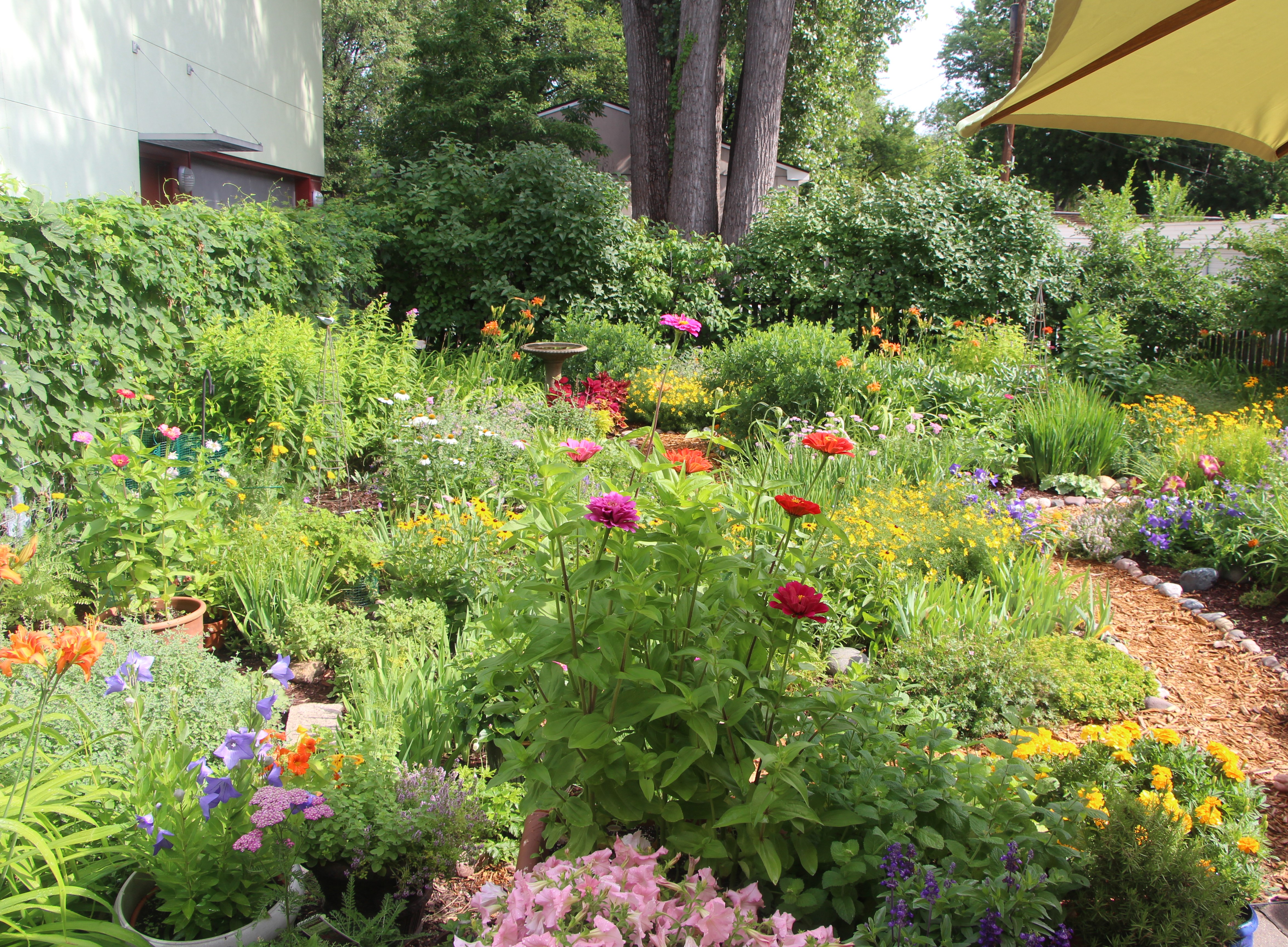A few weeks ago we joined a group of garden bloggers for the annual Garden Bloggers Fling. This was my third trip and Shawn’s second. It was just as amazing and fun as the others. MinneapolisFlingBannerThis year I mostly used my phone to take pictures and Shawn used the good camera. I had fun making picture collages and uploading them, tagging the location, as we left each destination to Instagram. The event started Thursday evening at the Minneapolis Central Library. It was a chance to greet friends we made last year and meet newbies while sharing nibbles and drinks. The library is new and our room had a wonderful view. Not as good as the view from our hotel room however. This is sunrise over Minneapolis from the Loews Hotel!#GBFling2016 view from the Loew Hotel We started the garden tours Friday morning at the Eloise Butler Wildflower Garden and Bird Sanctuary. Ms. Butler was a teacher and pioneering horticulturalist. She established the garden in 1907. It is the oldest native-plant garden in the United States. #GBFling2016 Eloise Butler Wildflower Garden and Bird Sanctuary. It was the perfect place to start our tour. It was refreshing to be out in nature, breathing in fresh air and surrounded by native plants.  We broke up into smaller groups. Our tour guide Tim was one of the gardeners who’s job is to keep out invasive plants. Tour guide #GBFling2016 Eloise Butler Wildflower Garden and Bird Sanctuary. Shawn went with another group that was on the fast track and saw more of the garden. Here they are going up one of the many trails through the meadow. #GBFling2015 Eloise Butler Wildflower Garden Wildflowers are so delicate and fun to happen upon in the lush green meadow. I love Button Bush Cephalanthus occidentalis. #GBFling2016 Button Bush Cephalanthus occidentalisMonarda fistulosa aka Bee Balm or Wild Bergamot.Monarda fistulosa aka Bee Balm and Wild Bergamot