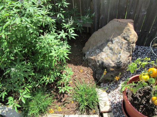I love the trend of creating a place to grow herbs and vegetables. There is nothing like fresh food! Below another little boulder tucked in just for fun!