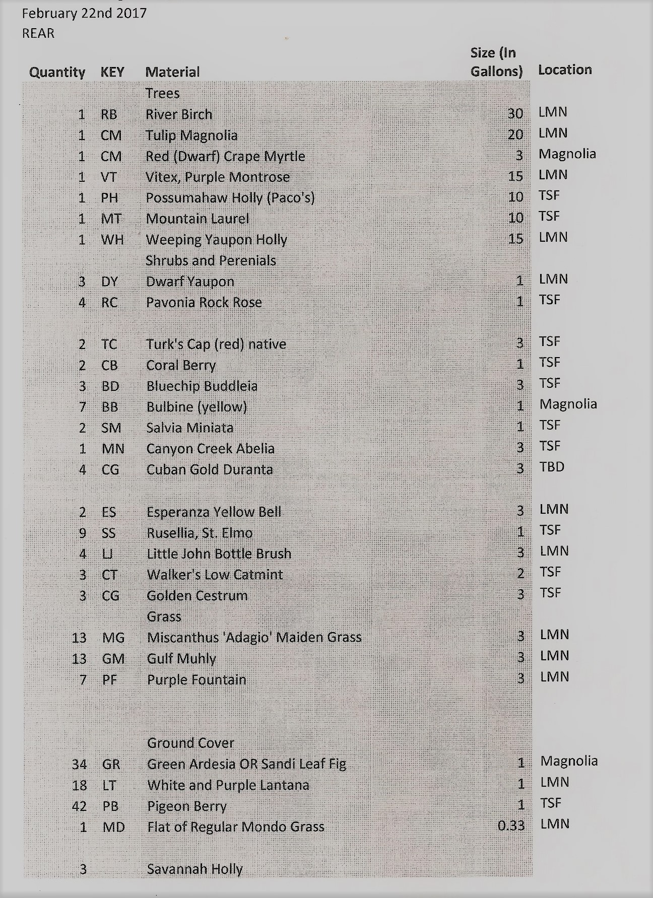 Complete Plant list including other side of gate and front garden.
